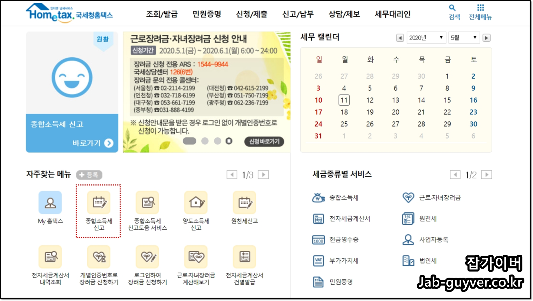 - 가장먼저 국세청홈택스 홈페이지에 접속합니다.