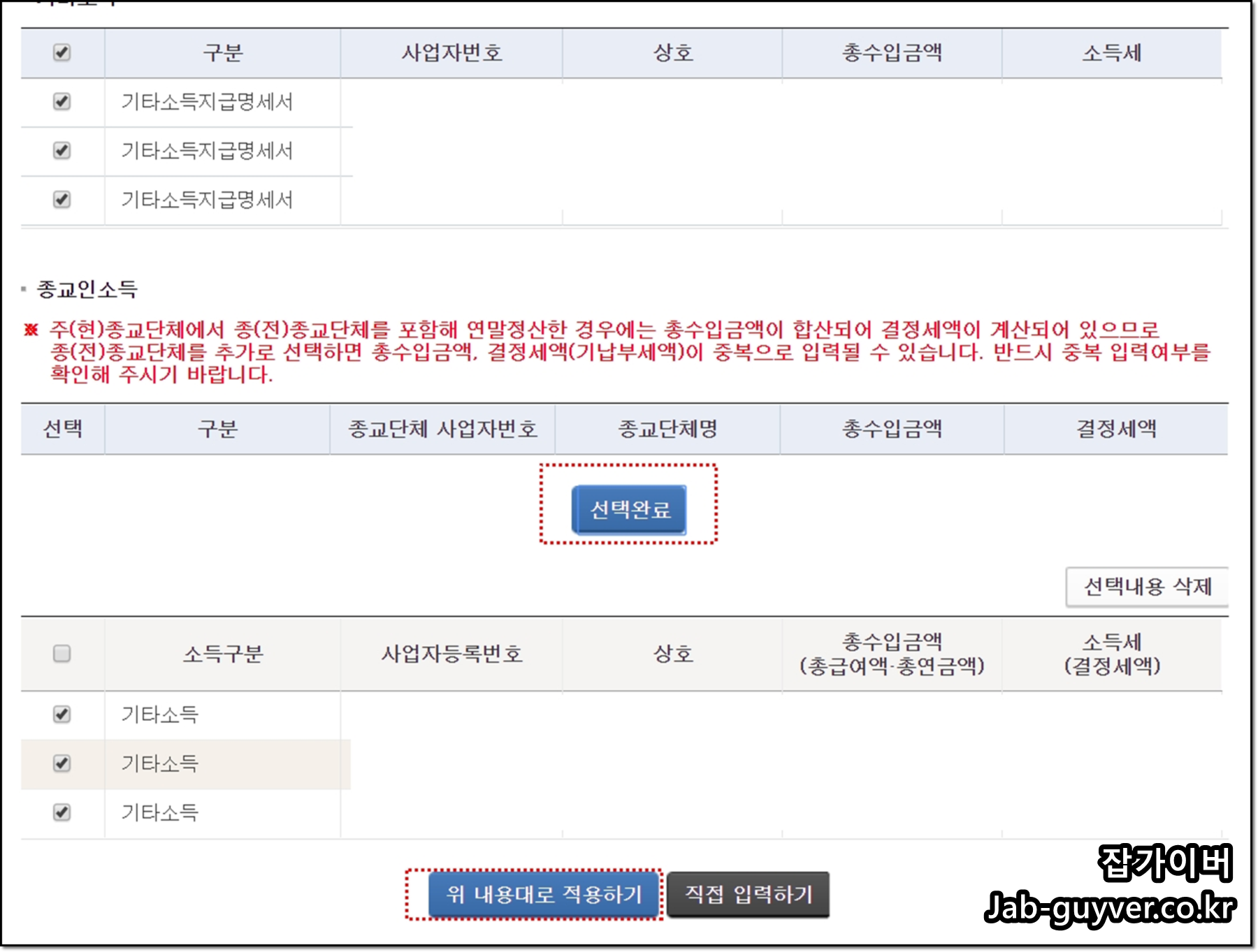 이후 별도로 입력해야 하는 소득공제 내역이 있다면 입력하고 없다면 무시합니다.