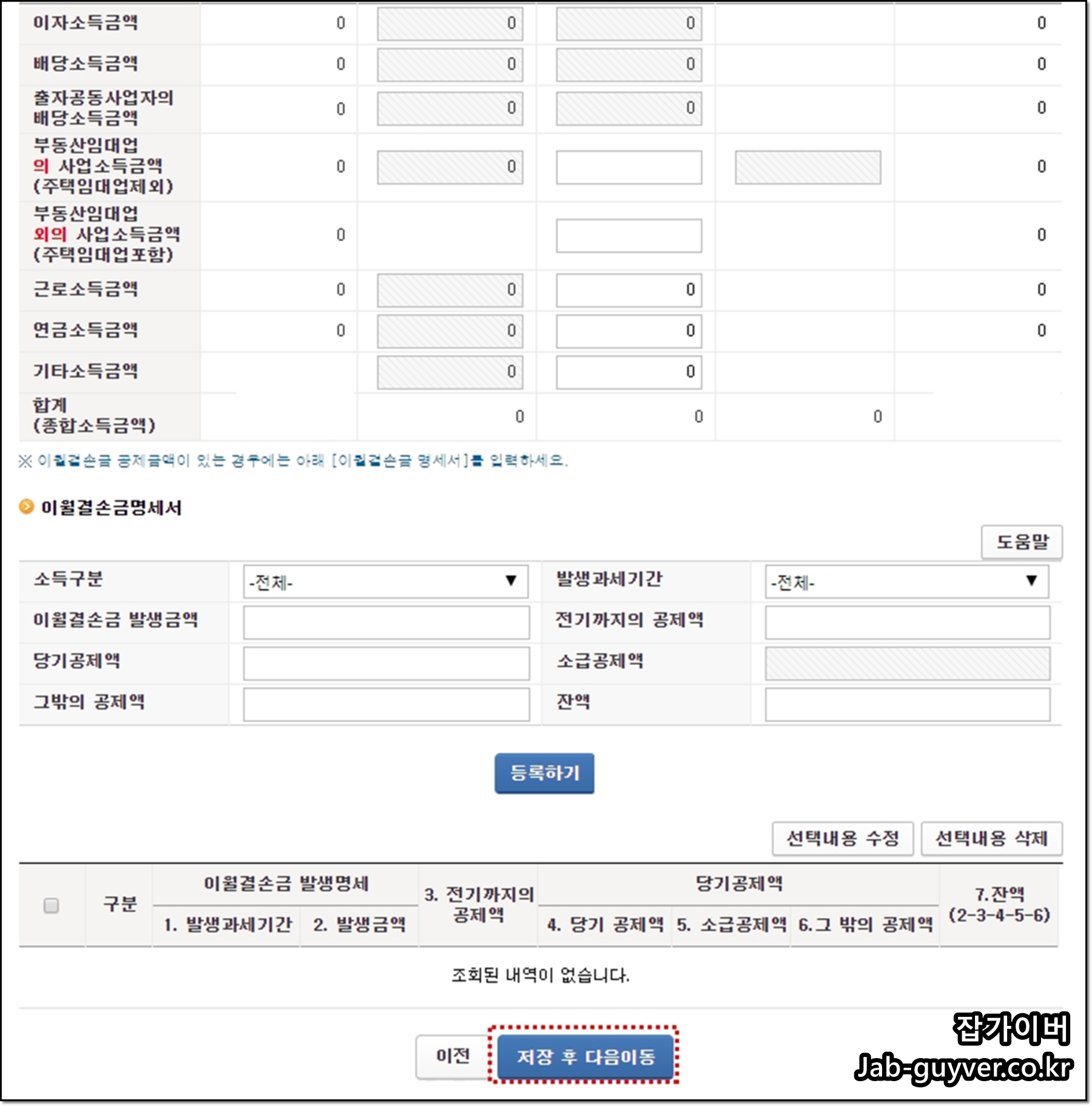 이후 별도로 입력해야 하는 소득공제 내역이 있다면 입력하고 없다면 무시합니다.