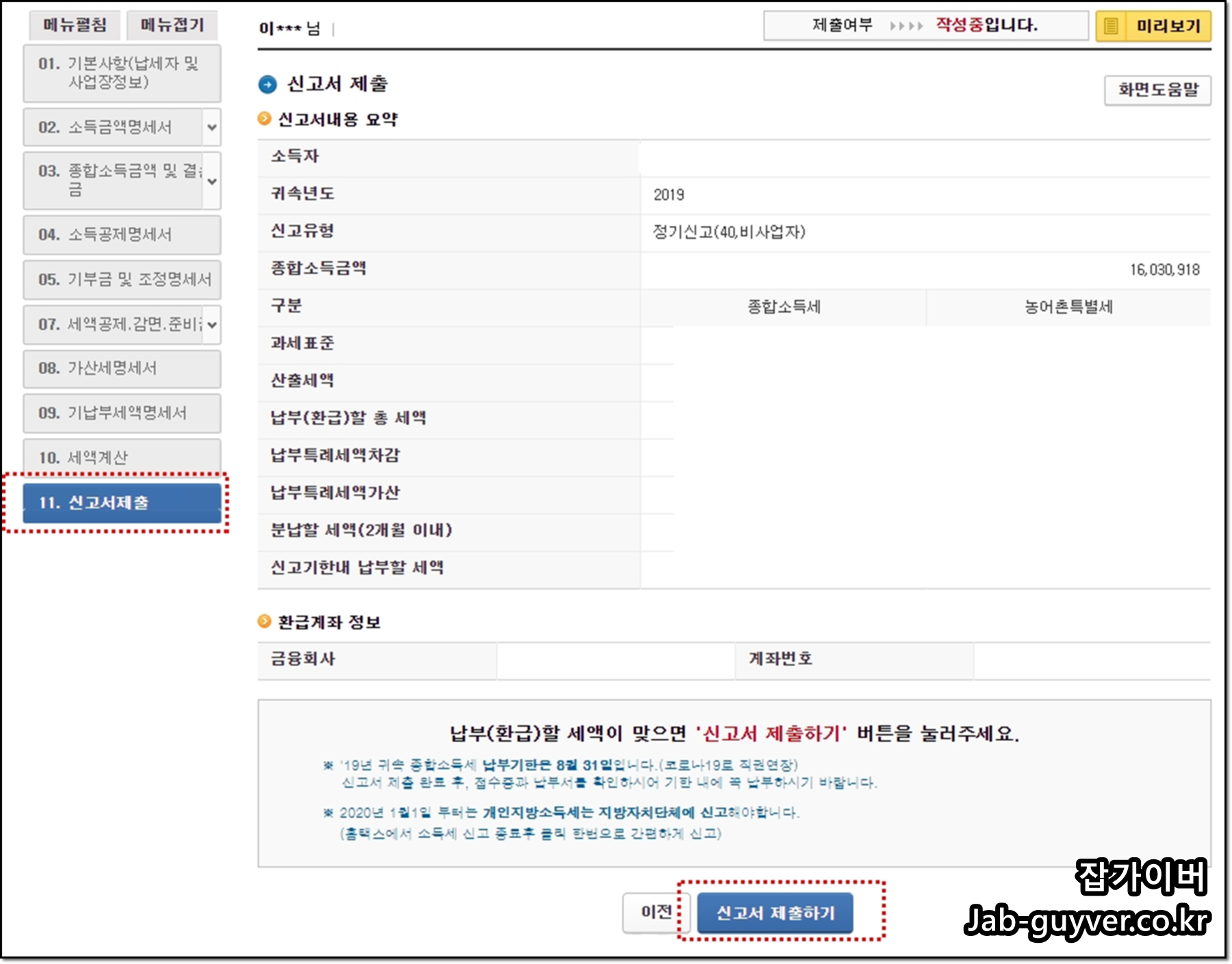 - [건강 세금/직장인 세금] - 종합소득세 신고 환급액 조회 3.3% 세금