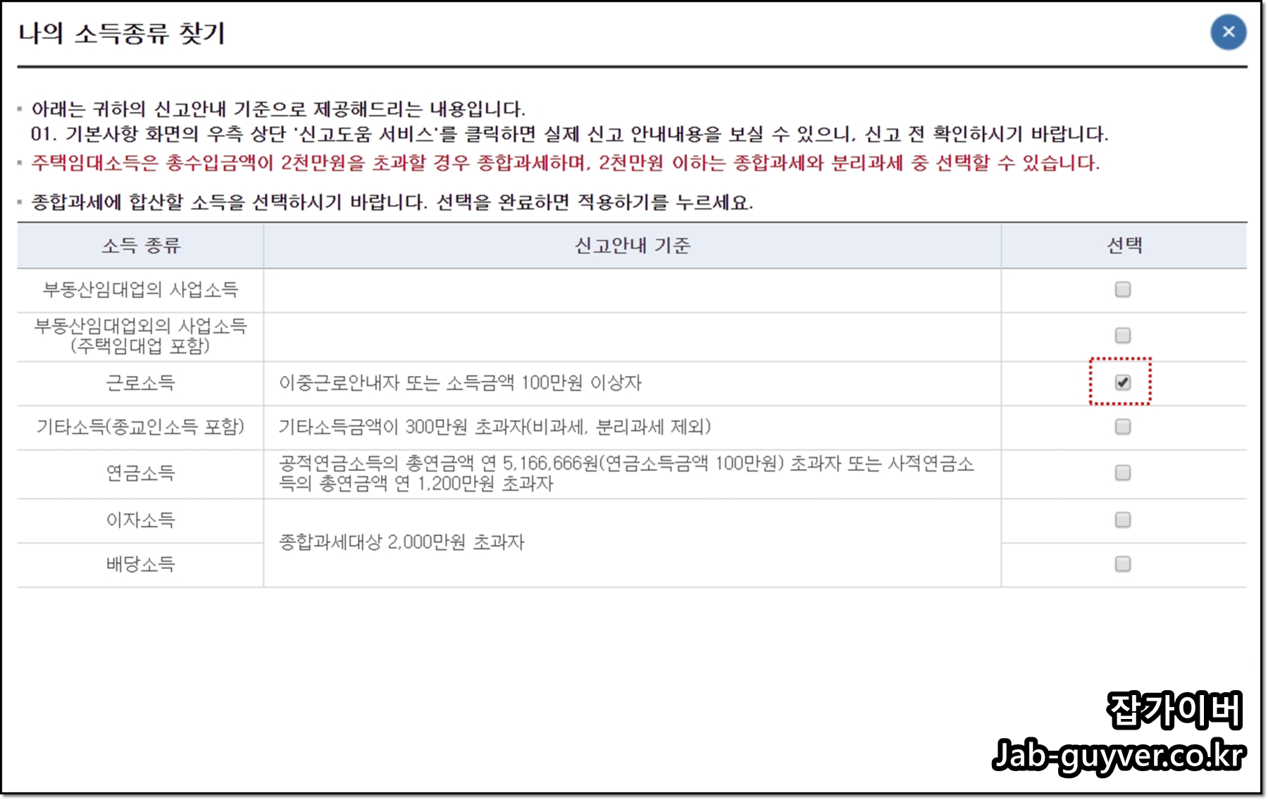 - 그리고 "종합소득세 신고"항목을 선택합니다.