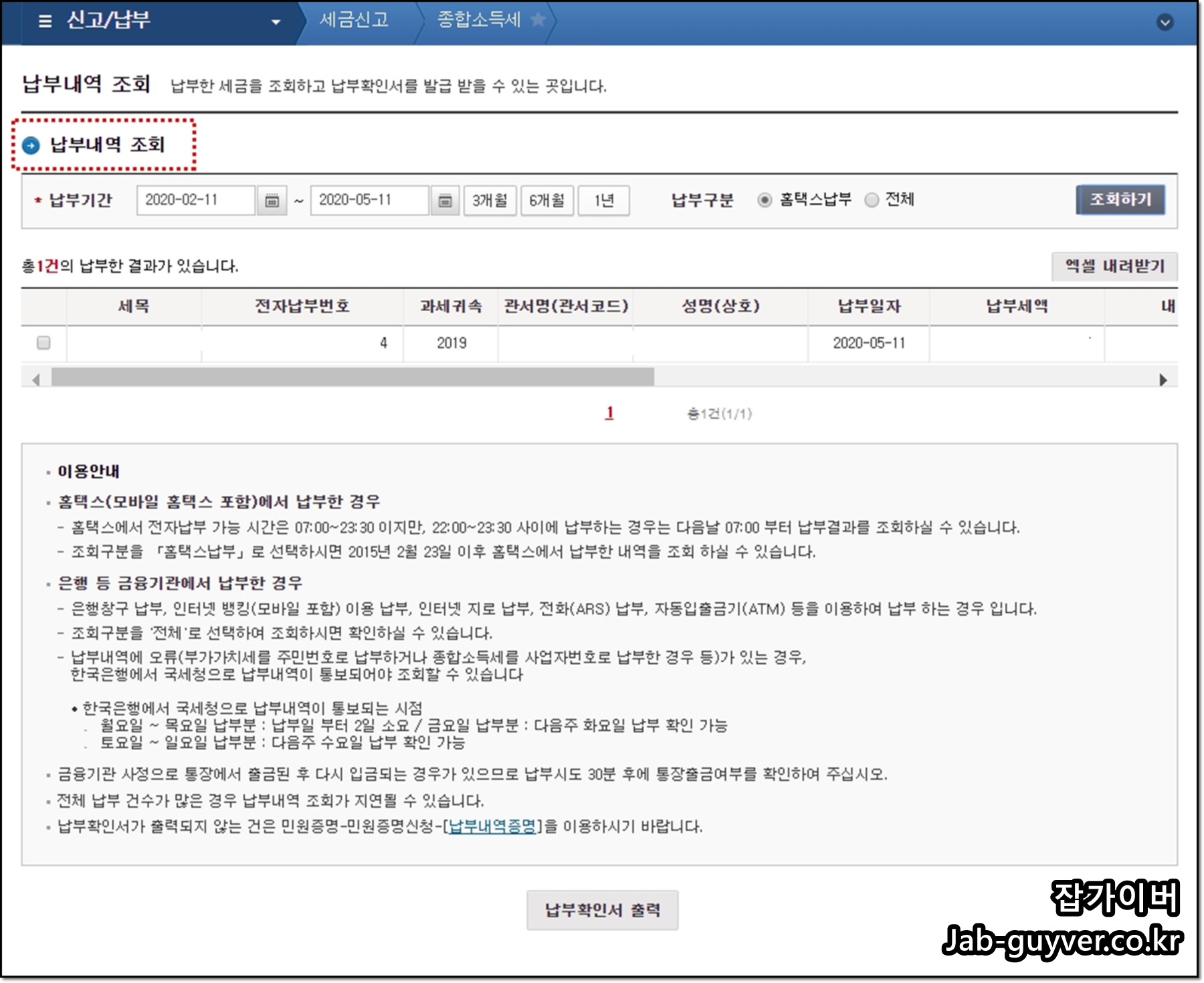 그리고 즉시납부버튼을 통해 바로 세금을 납부할 수 있습니다.