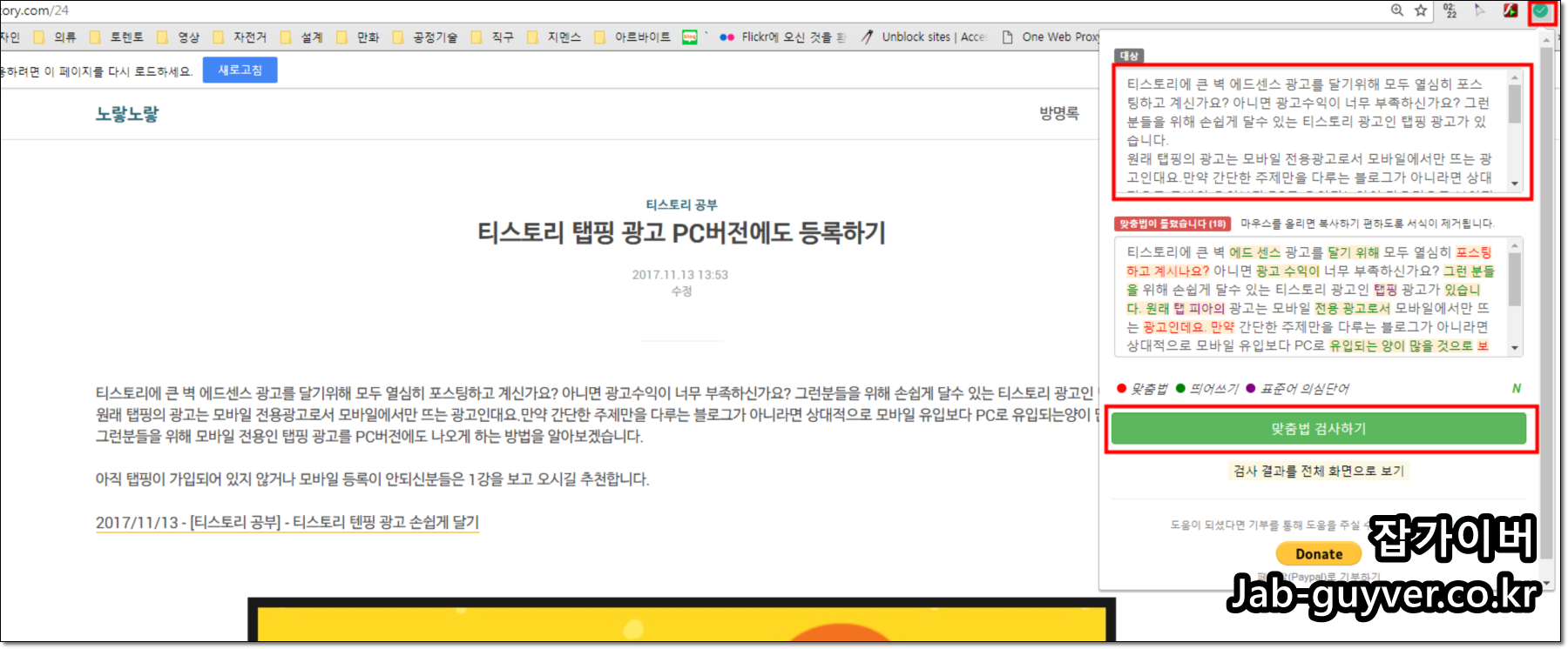 구글크롬의 확장 프로그램을 이용하면 맞춤법을 쉽게 검사할 수 있습니다.