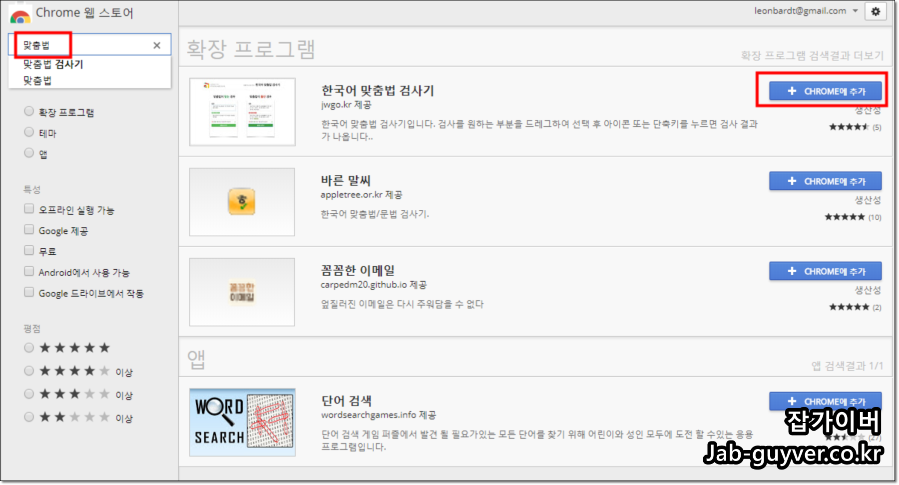 이후 "한국어 맞춤법 검사기"를 구글크롬에 추가합니다.