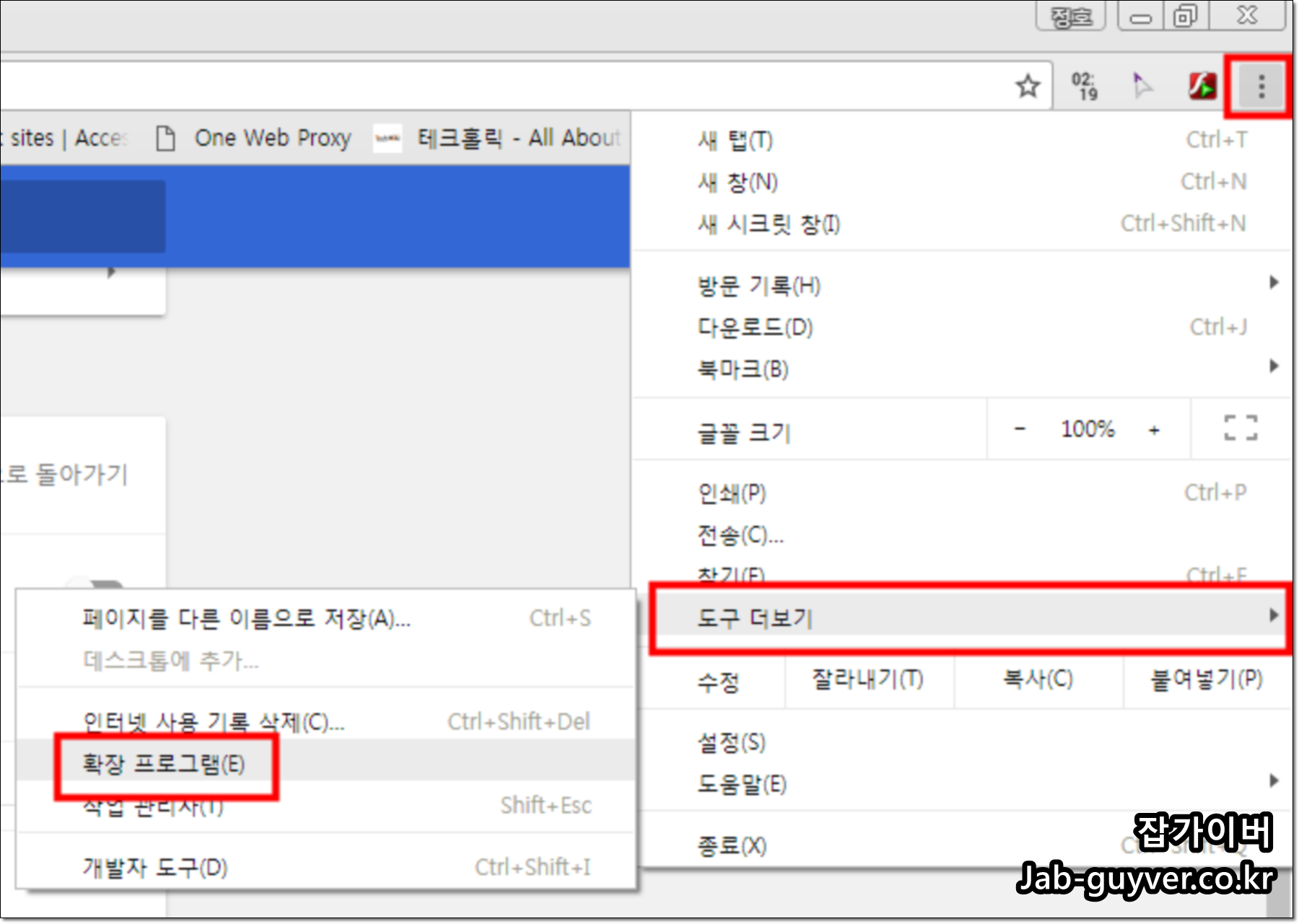 도구 더보기 -> 확장프로그램을 선택합니다.