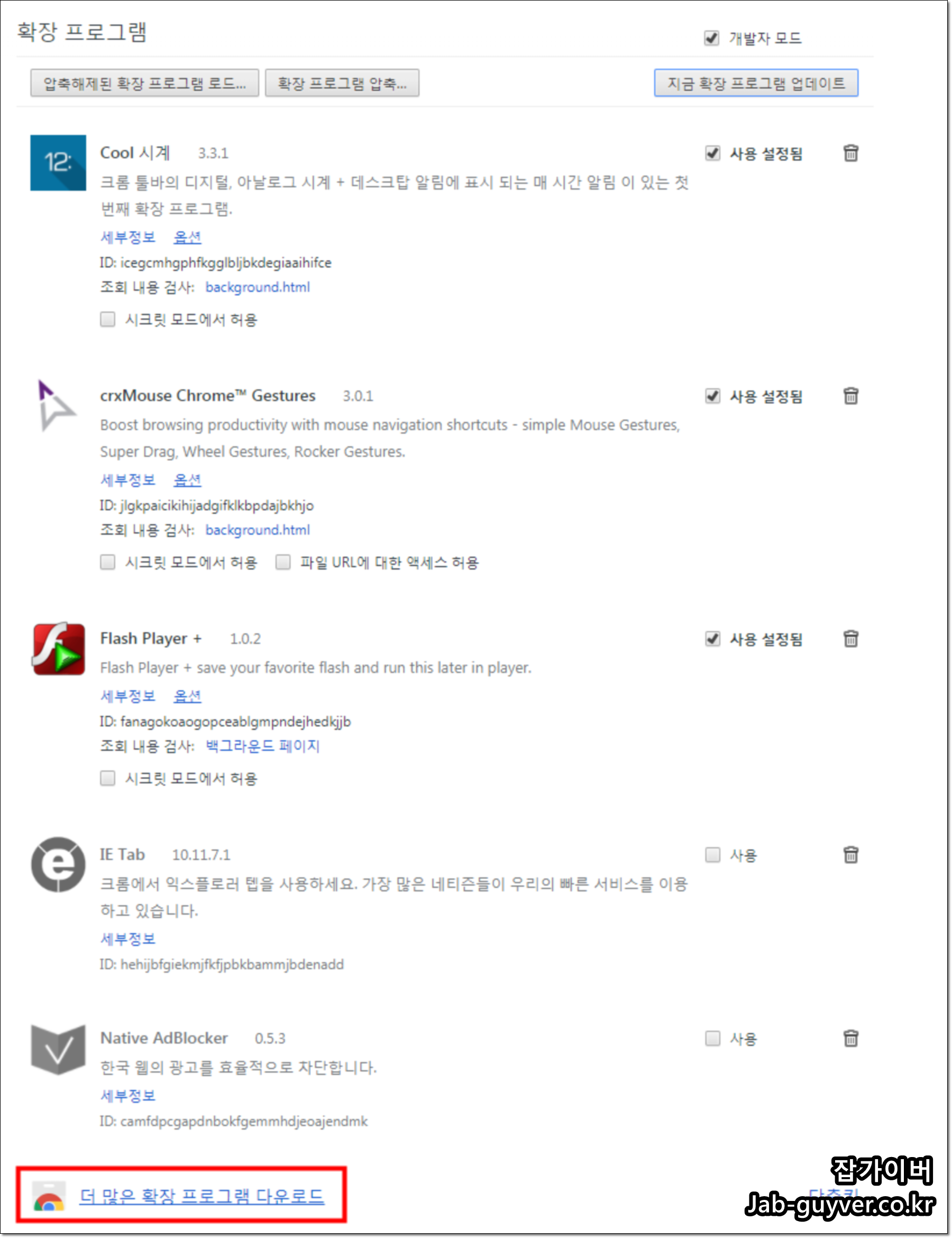 가장 아래로 내리면 "더 많은 확장 프로그램 다운로드"를 선택합니다.