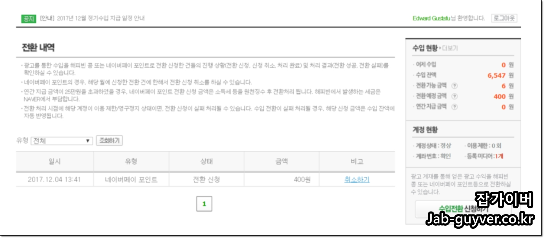 애드포스트 환전 시 통장입금과 네이버페이 전환 차이점은?