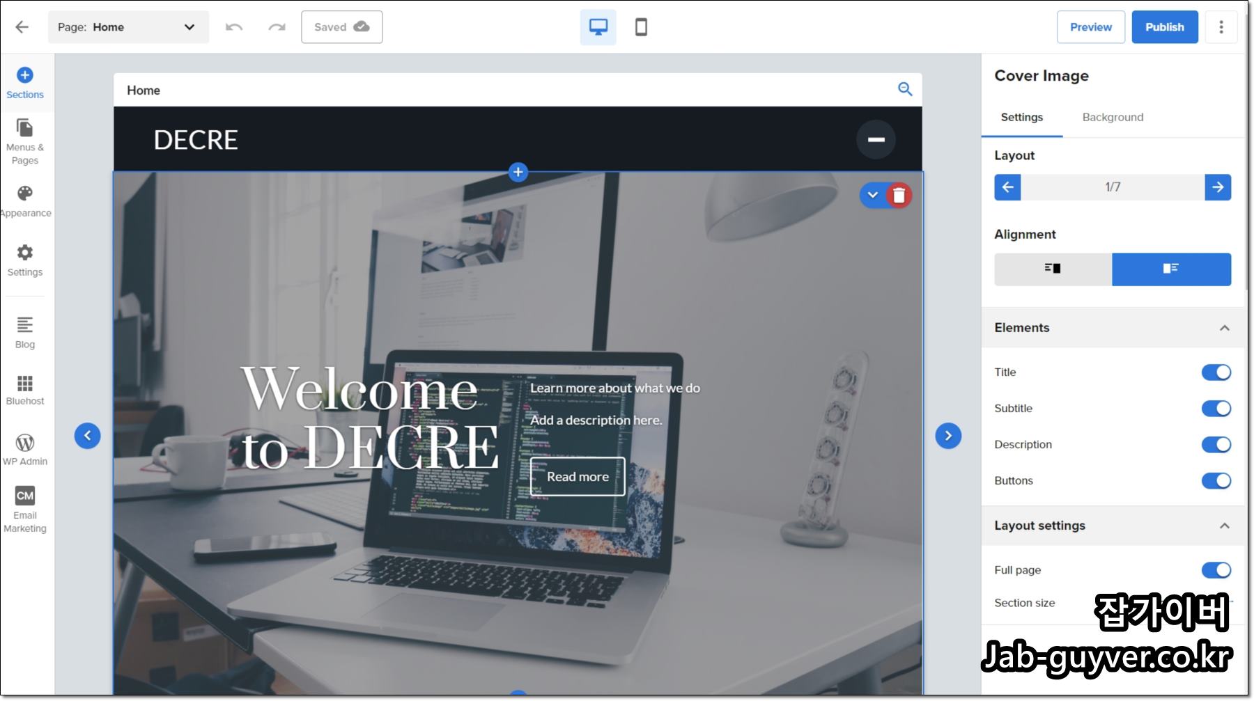 블루호스트 빌더 이용한 간단한 사이트 제작방법