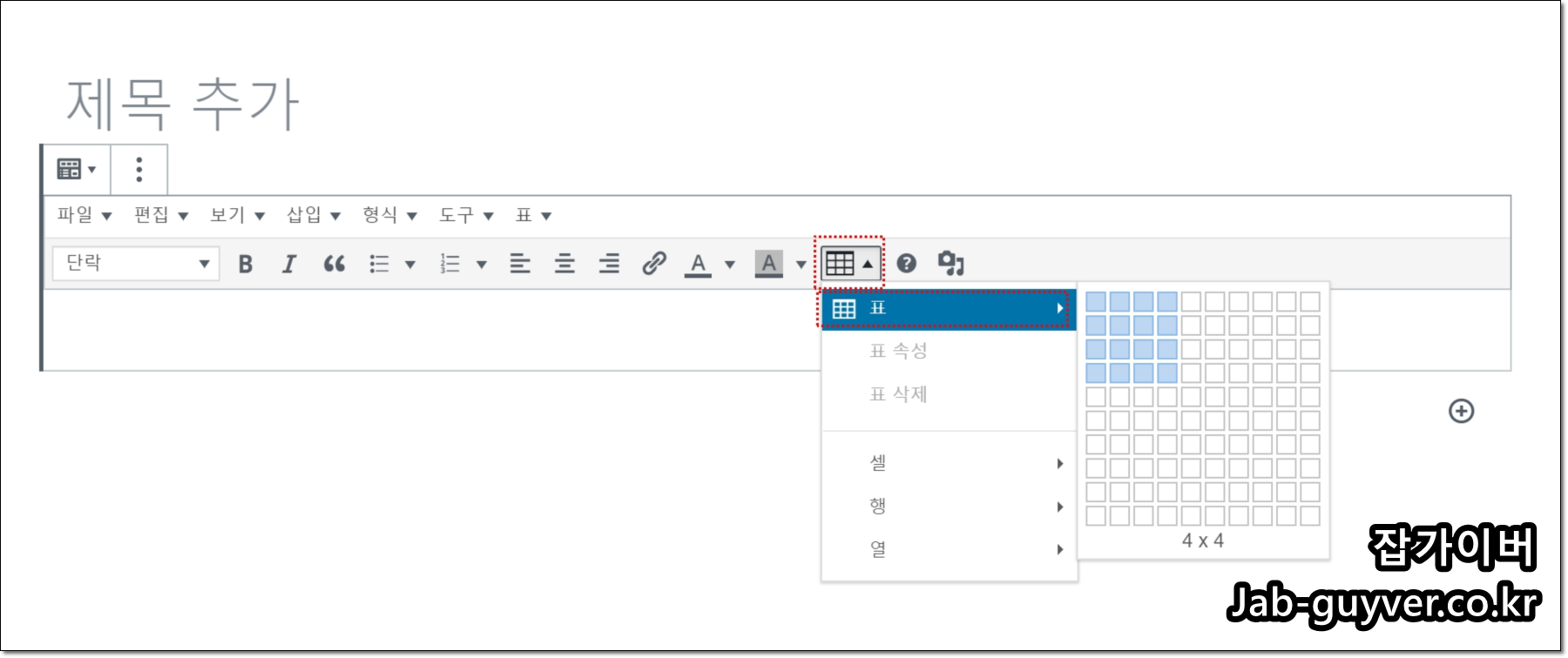 워드프레스 테이블 셀 병합·분할과 표 디자인 설정