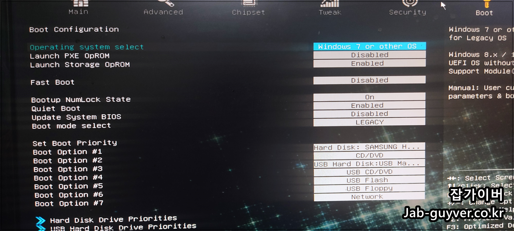 USB 부팅순서 변경 Cmos 설정 방법 - 메인보드