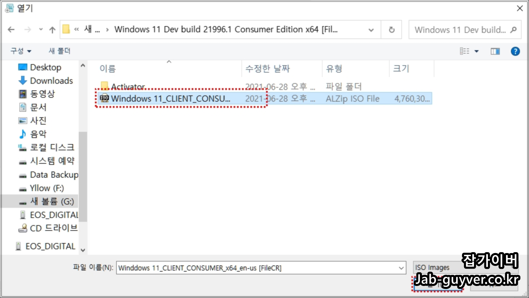 설치하고자 하는 윈도우11 가상파일을 선택합니다.