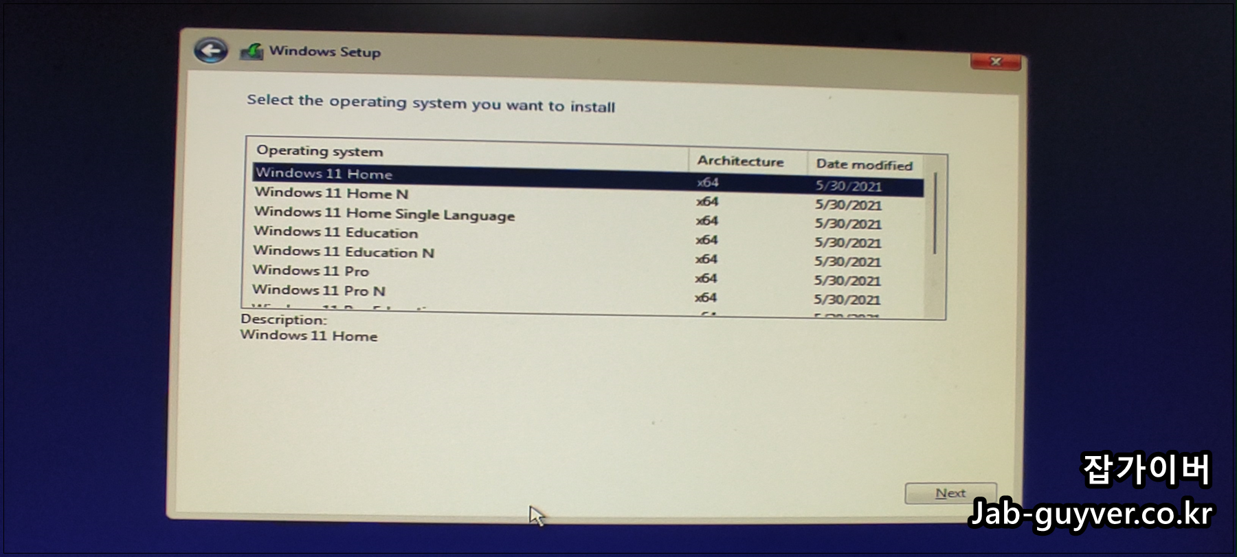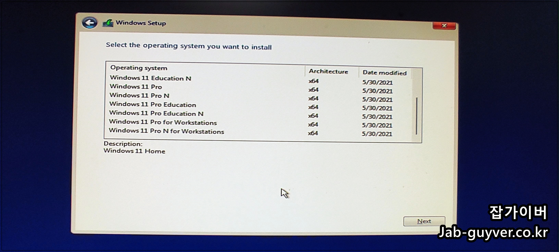 원하는 윈도우11 버전을 선택 후 설치를 진행합니다.