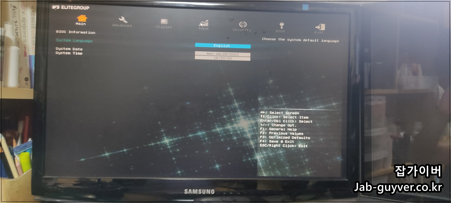 부팅시 Del 키를 눌러 메인보드 시모스 "CMOS"로 들어갑니다.