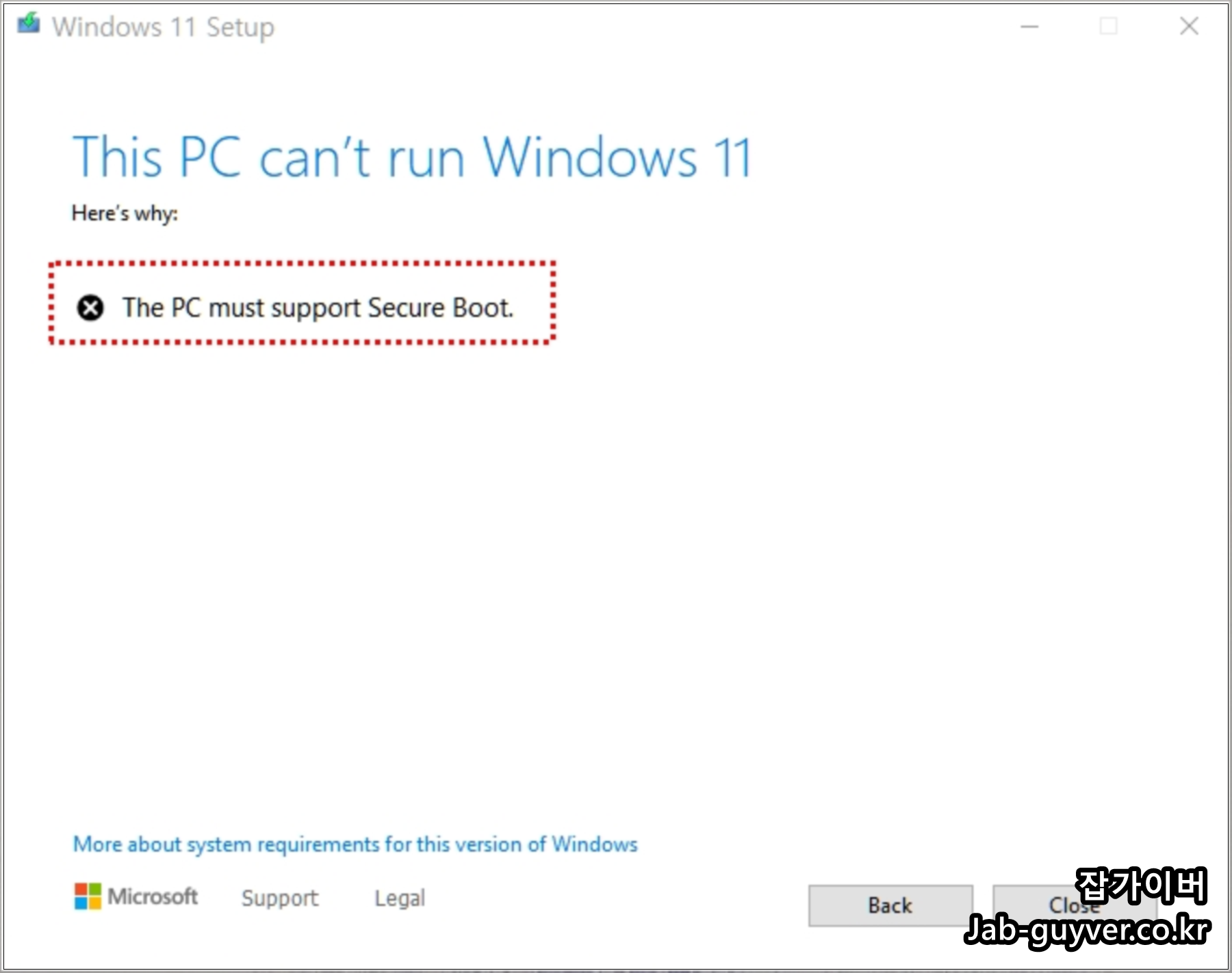 하지만 The Pc Must Support Secure Boot이라고 보안부팅을 통해 설치를 진행해야합니다.