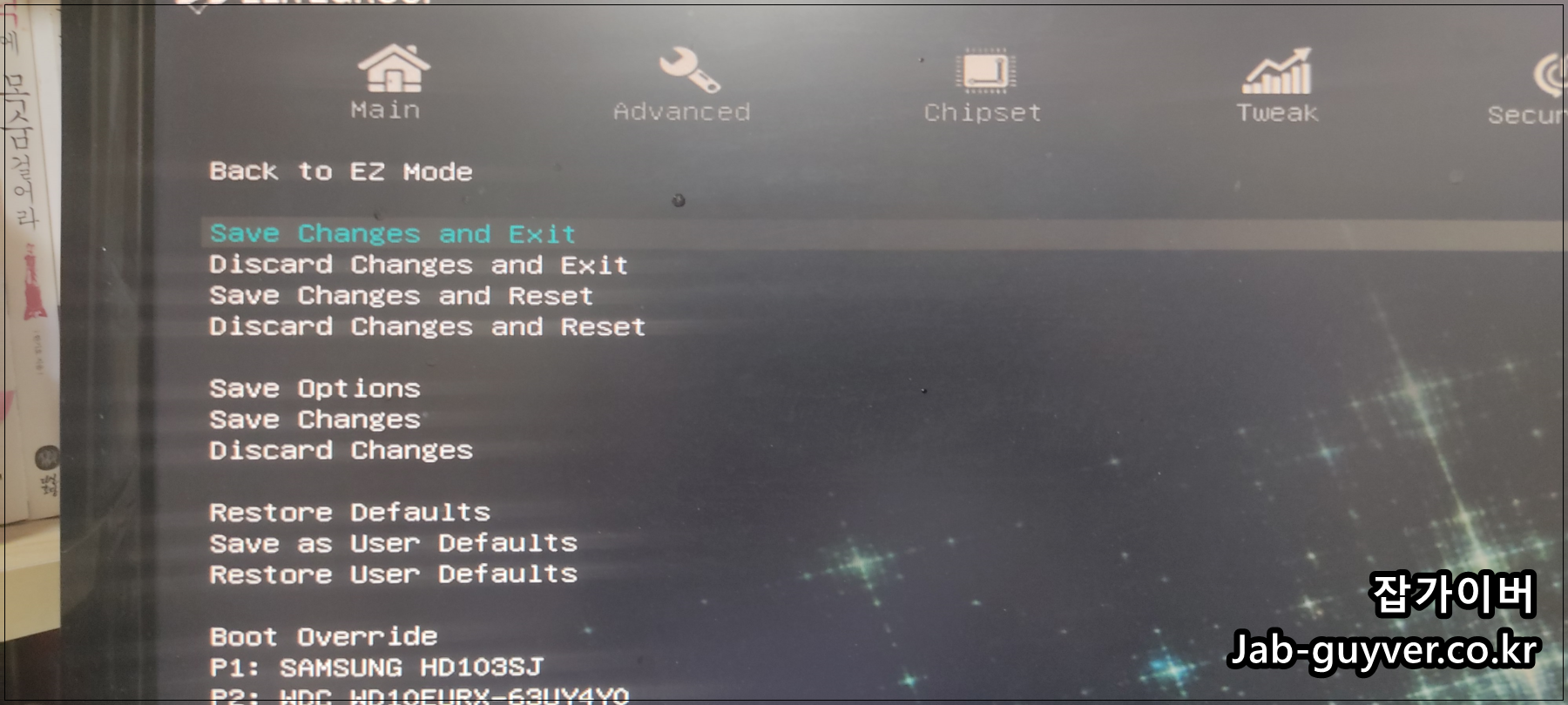 SAVE Change And Reset을 눌러 저장 후 재부팅합니다.
