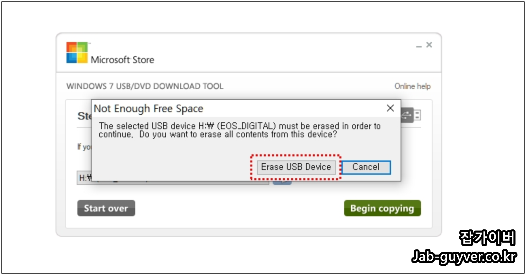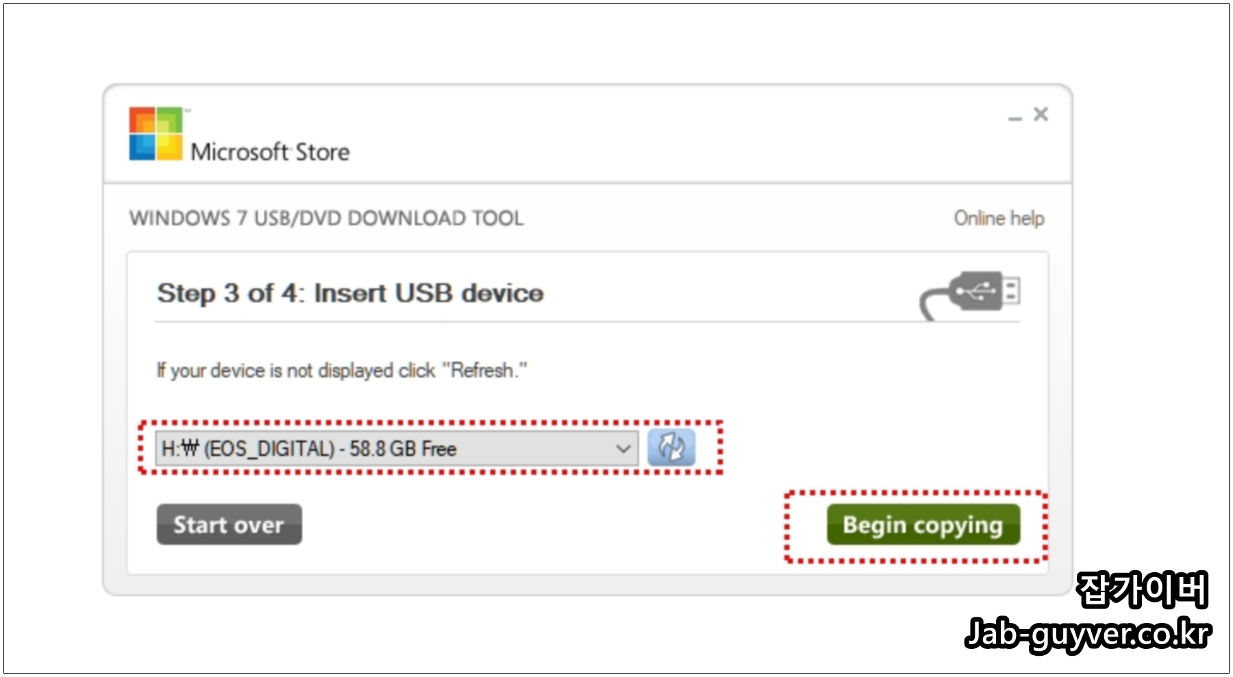 부팅디스크를 만들 USB를 확인 후 Begin Copying을 선택합니다.