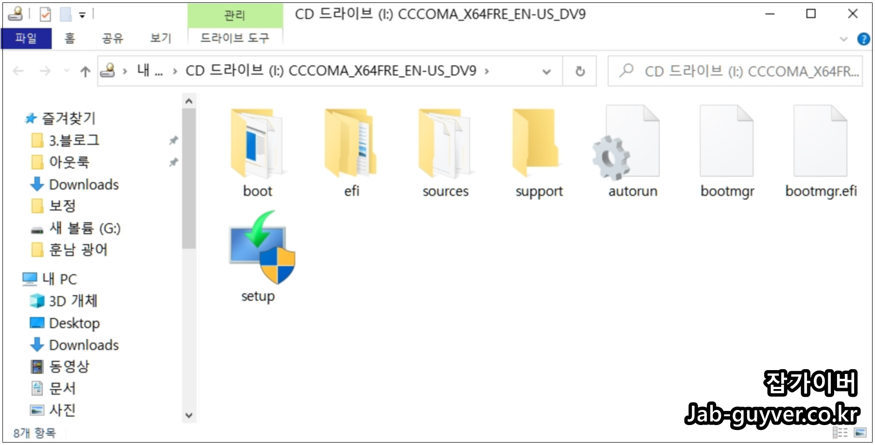 토렌트를 통해 다운로드 받은 윈도우11은 ISO 가상마운트를 통해 설치파일을 확인할 수 있습니다