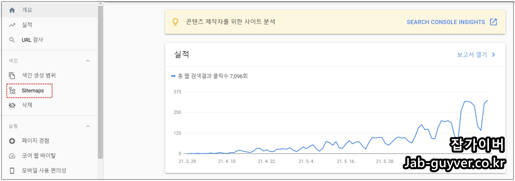 왼쪽 SiteMaps을 확인하면 오류가 계속 발생하는 사이트맵이 있습니다.