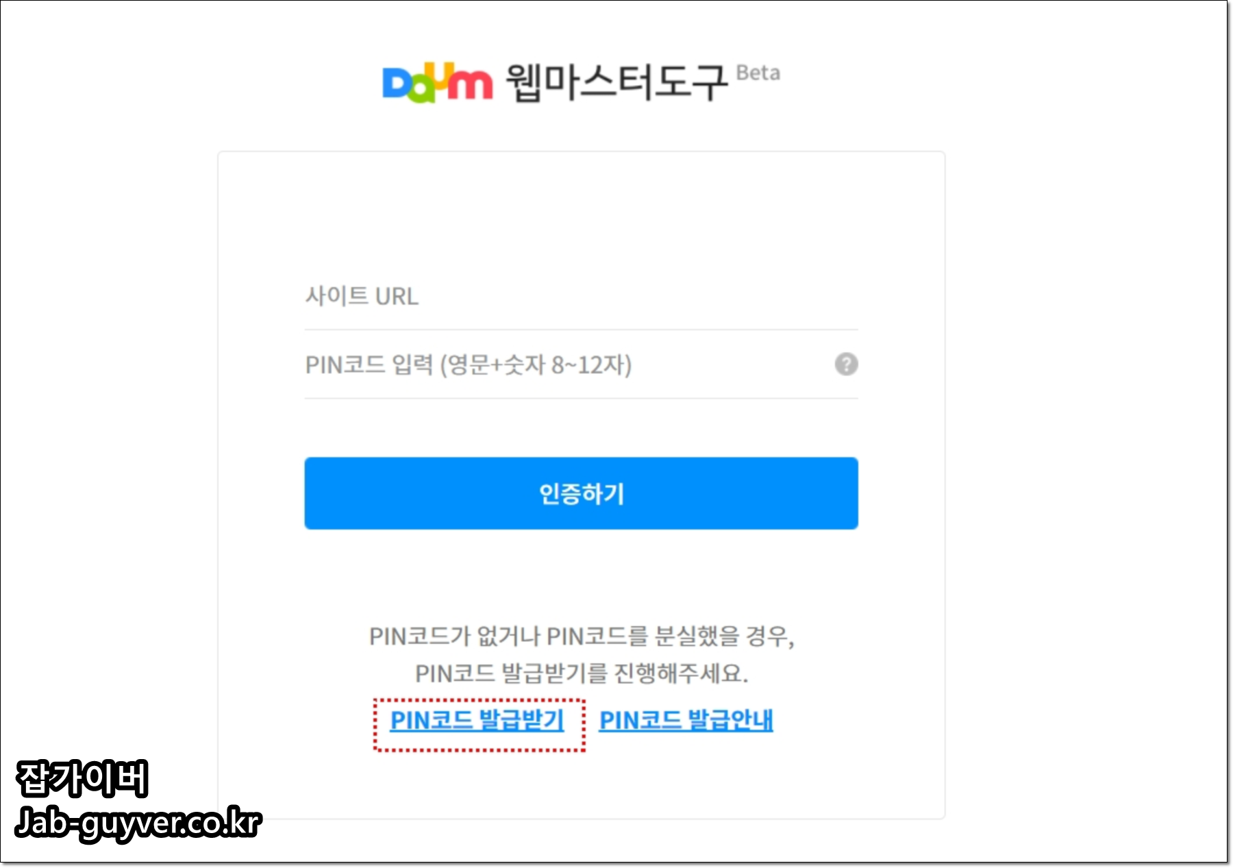 다음 검색엔진 웹마스터도구 등록을 위해서는 PIN코드 발급받기를 통해 신규등록을 합니다.