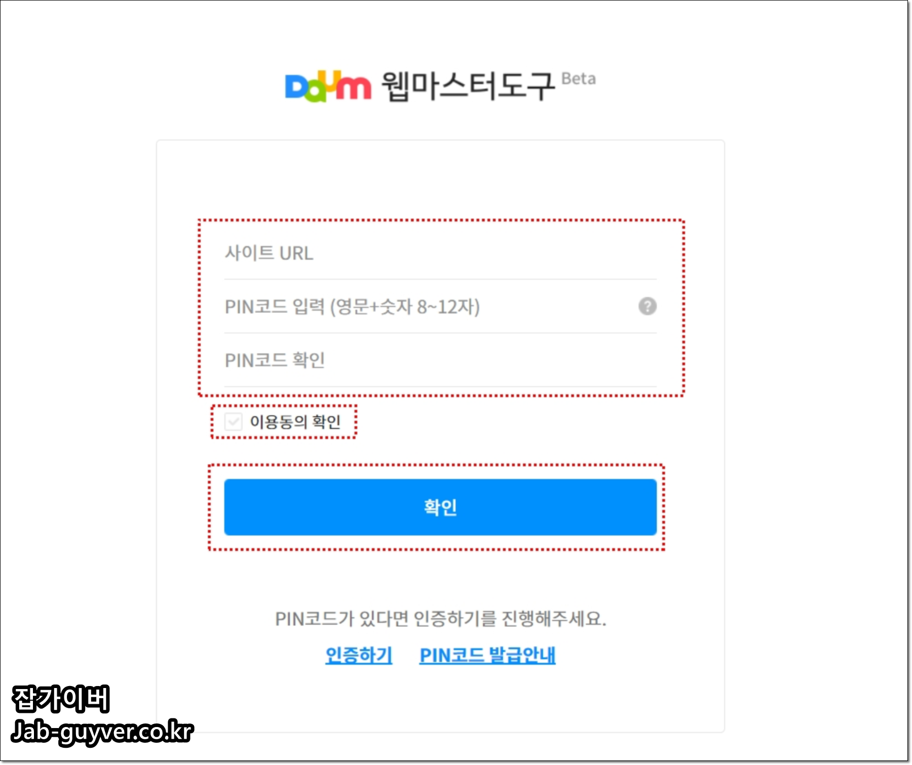 다음 검색엔진 웹마스터도구 등록을 위해서는 PIN코드 발급받기를 통해 신규등록을 합니다.