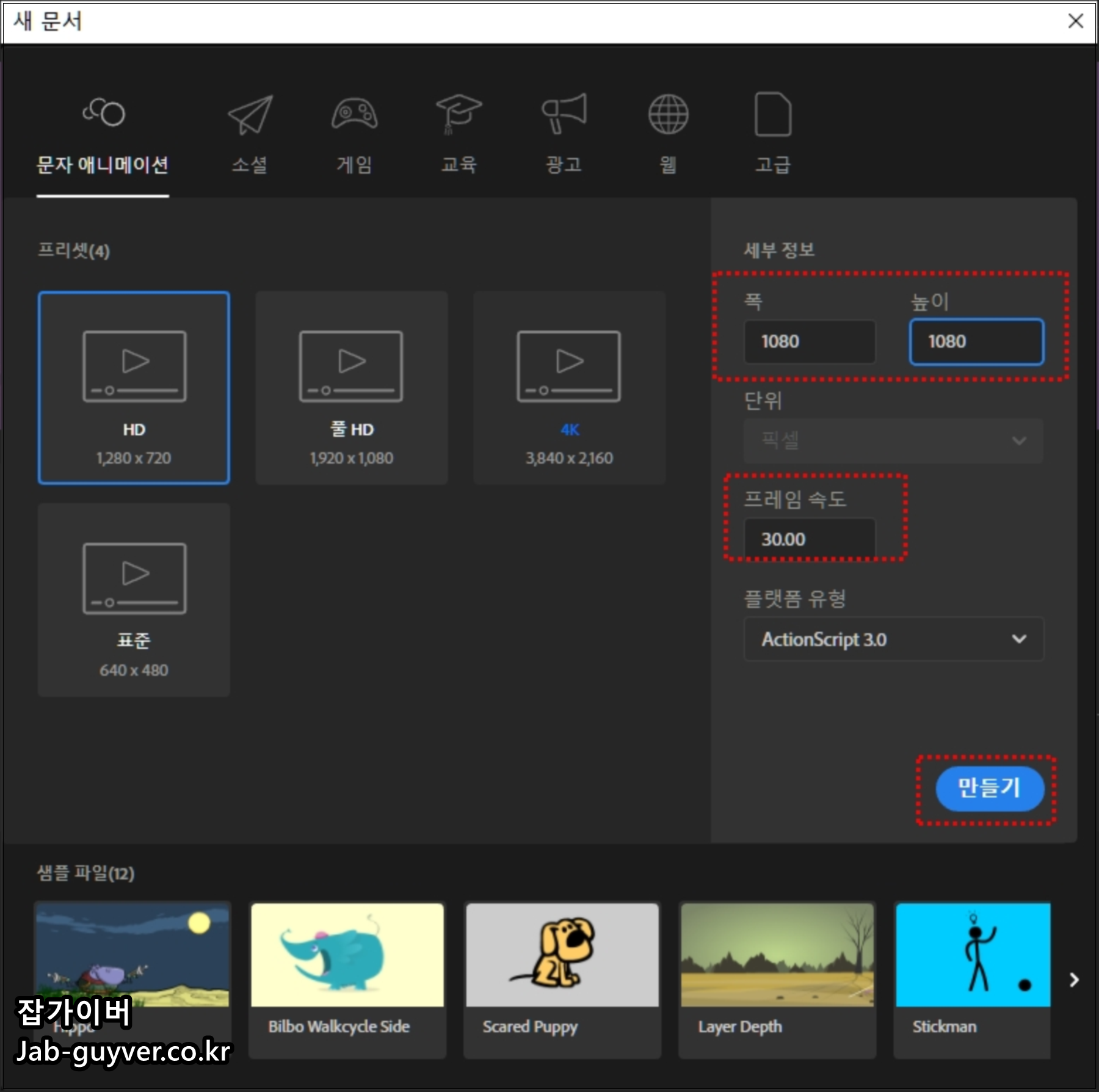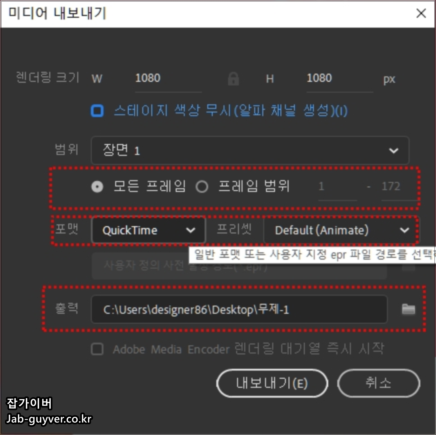 SWF 동영상 저장 파일변환 인코딩 - Animate CC 2021