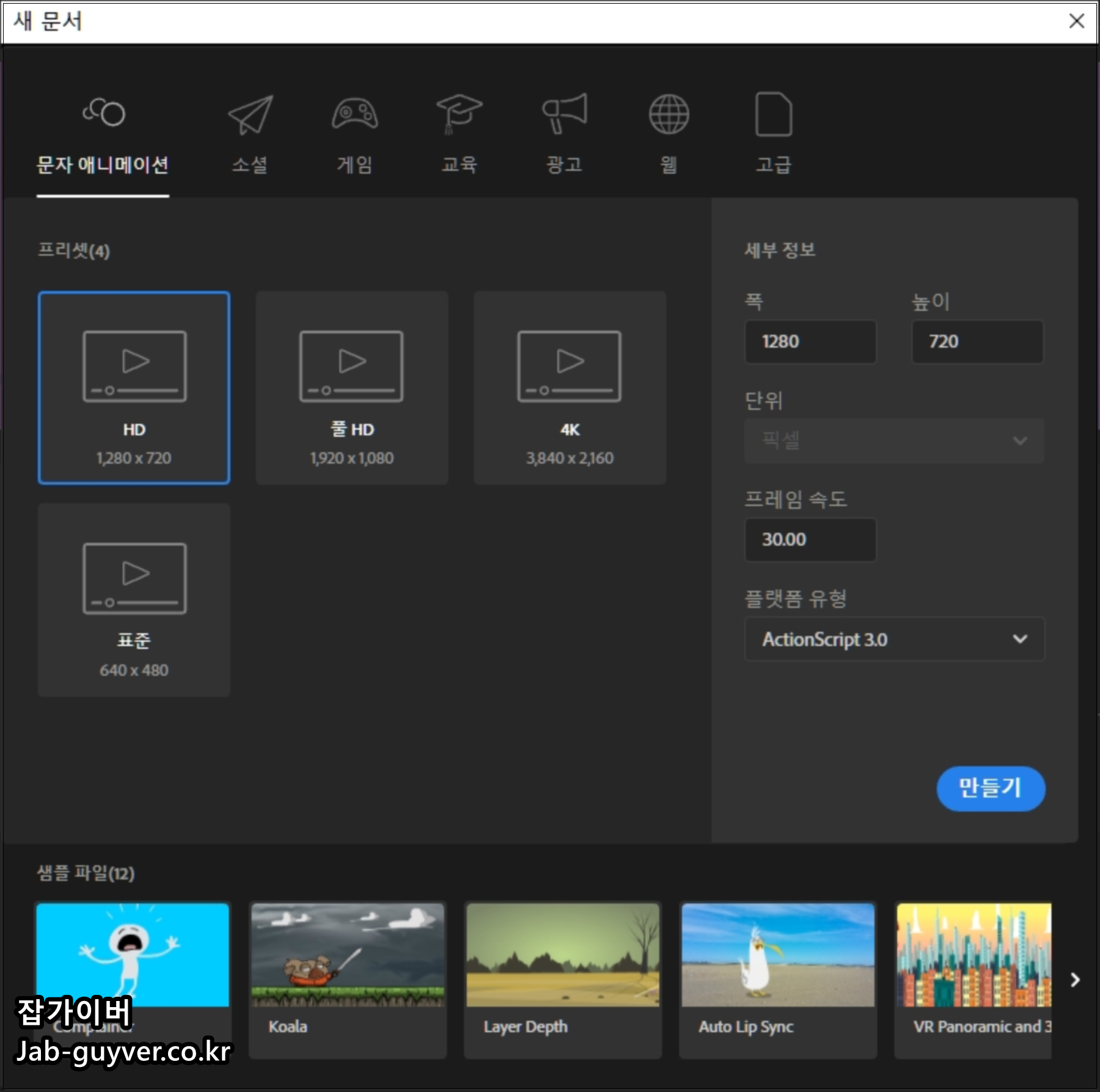 SWF 동영상 저장 변환 프로그램 Adobe Animate