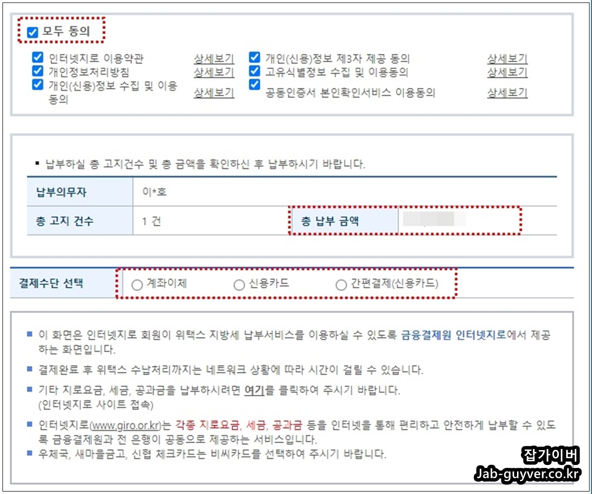 납부할 금액이 맞는지 확인합니다.