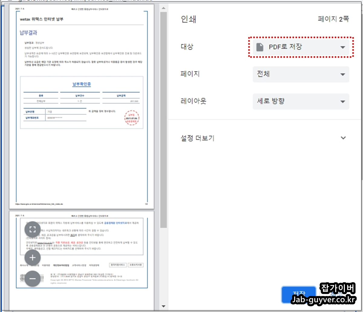 지방세 납부확인증 PDF 저장 및 출력