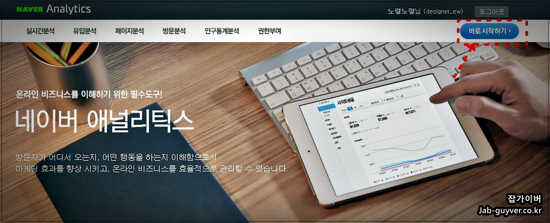 네이버 애널리틱스 홈페이지로 접속 후 로그인합니다.
