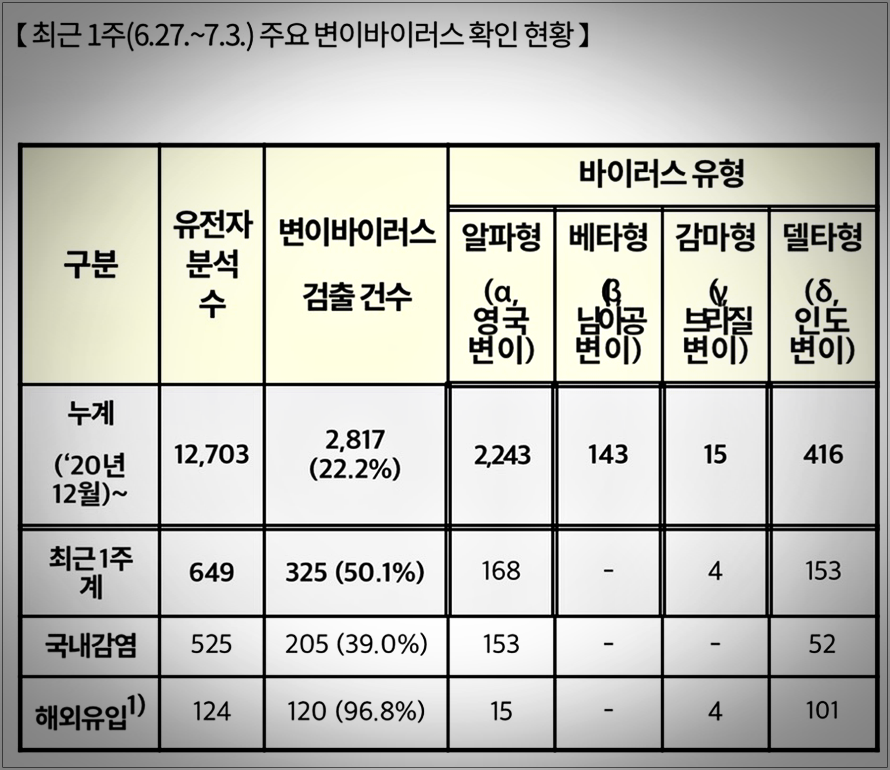 델타 변이의 경우 알파 변이 바이러스보다 전파력이 무려 60% 정도 강한 바이러스로서 이에 대한 추가 연구에 따르면 위에서 다른 국가들을 보면 확진자 중 90% 정도가 델타 변이로 인한 감염 증상으로 보입니다.