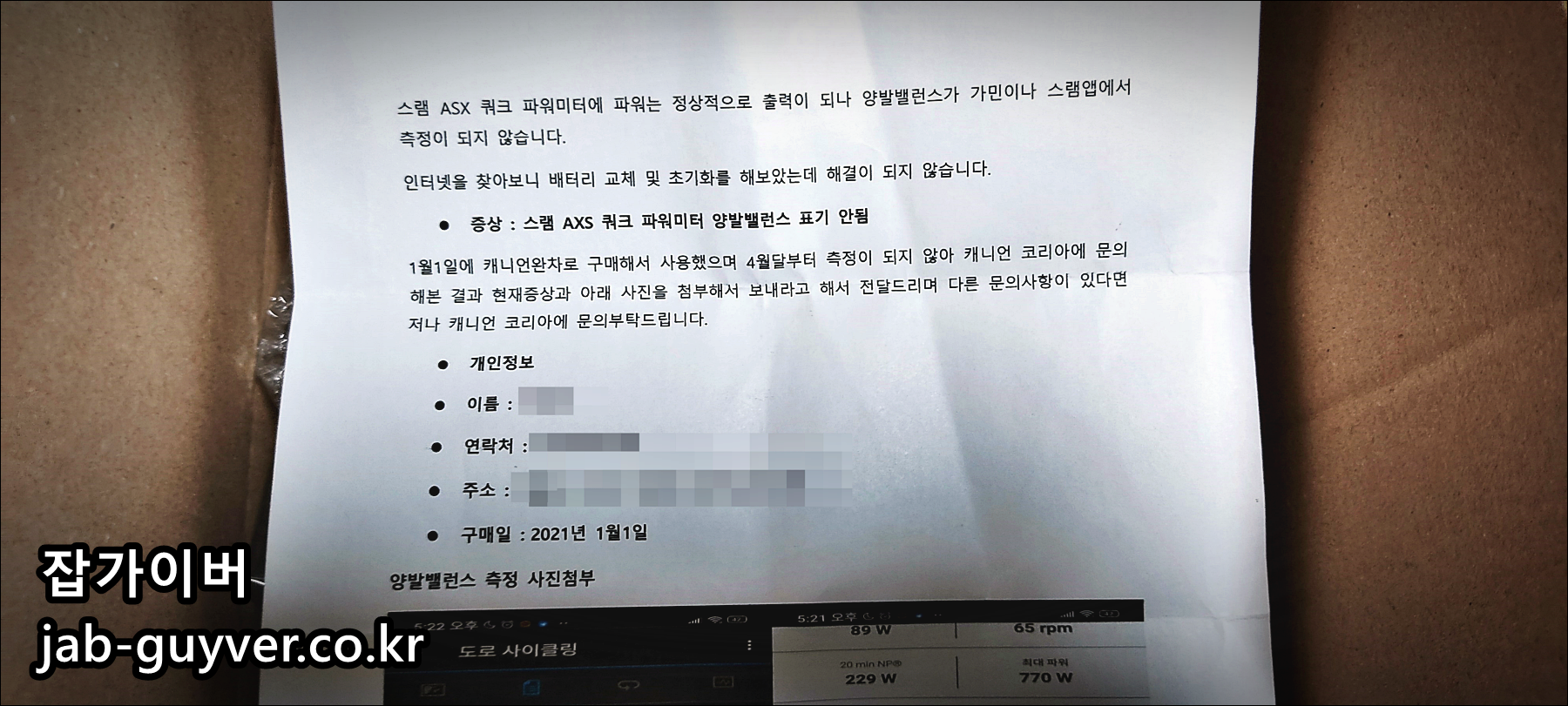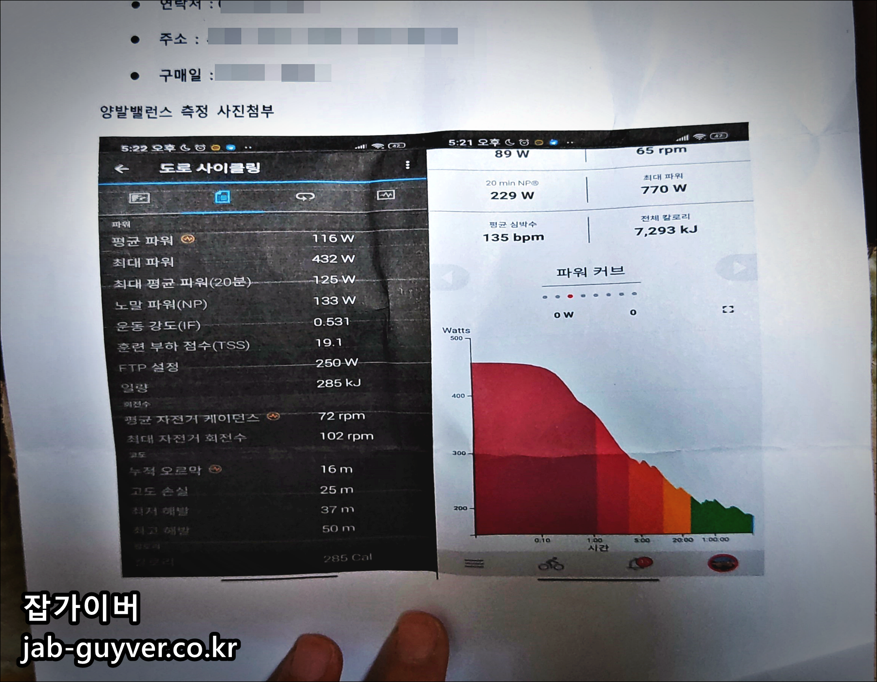 - 증상 설명 및 파워 측정기 화면 캡처 (ex. 가민 연결 화면)