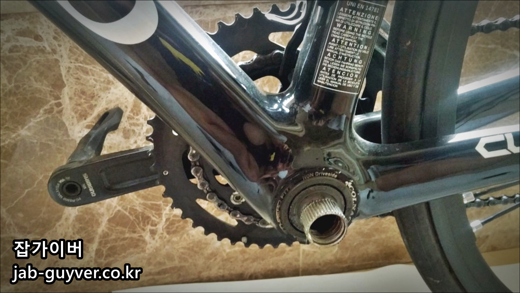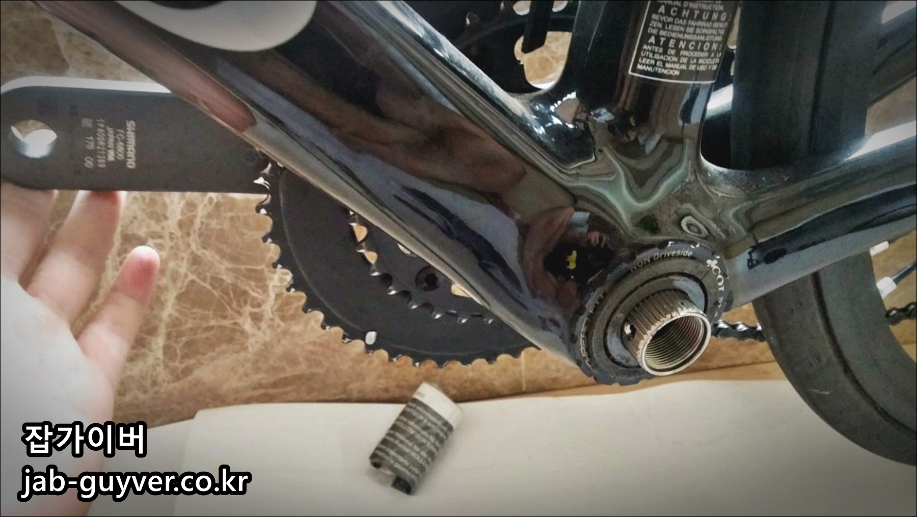 크랭크를 자전거 비비 "BB쉘"에 넣고 논드라이브 쪽 크랭크 암을 껴줍니다.