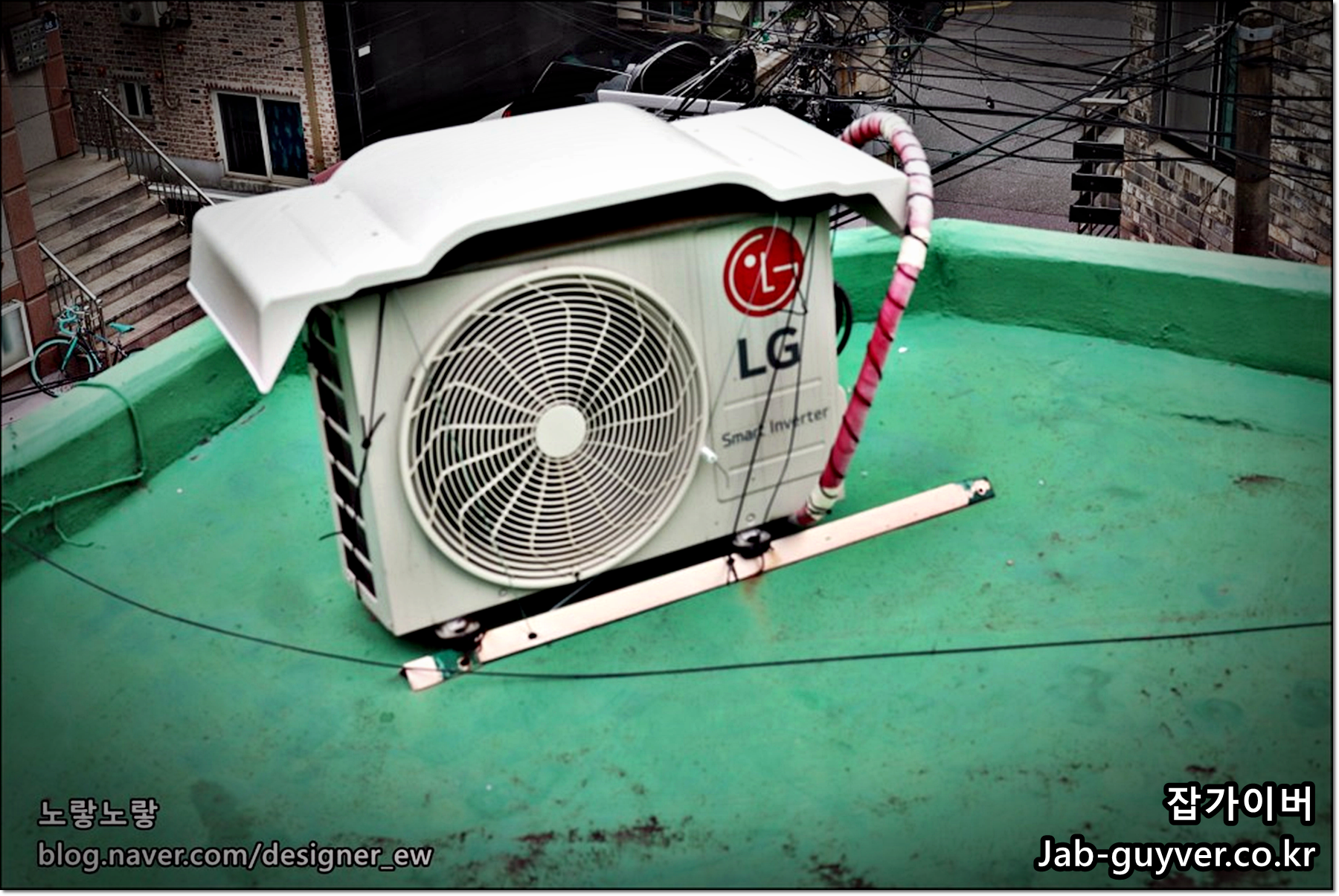 그리고 비나 눈,먼지등 이물질이 끼지 않도록 에어컨 실외기 커버를 씌우는것이 좋습니다.