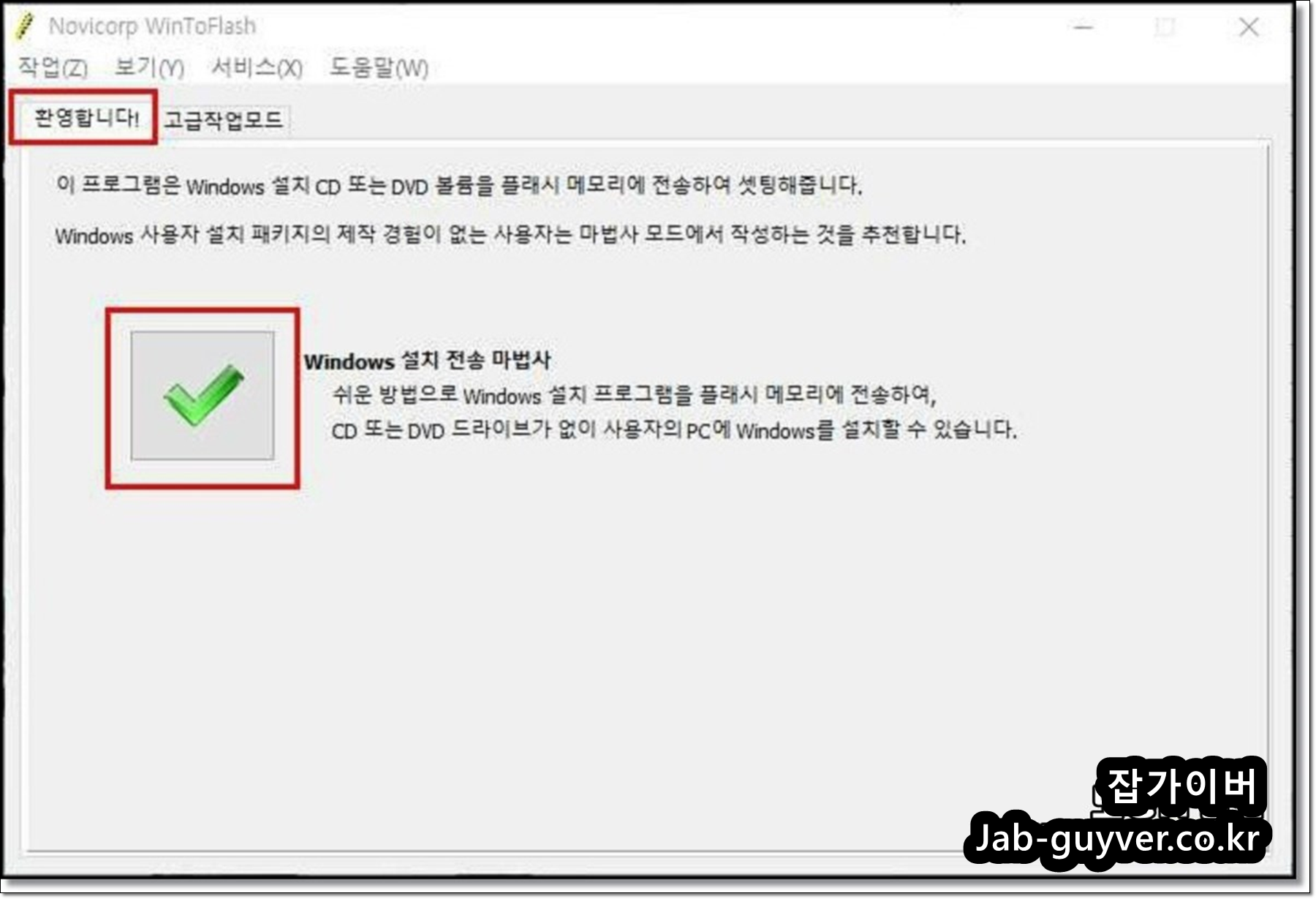 해당 프로그램 윈도우 설치시디나 DVD를 플래쉬메모리로 전송하는 프로그램으로 윈도우 부팅이 가능하도록 하는 기능입니다.