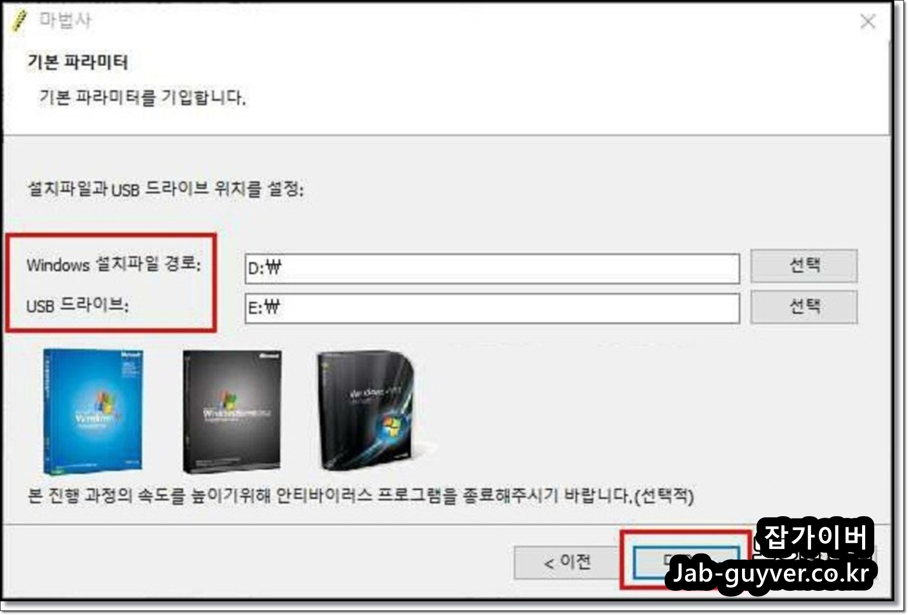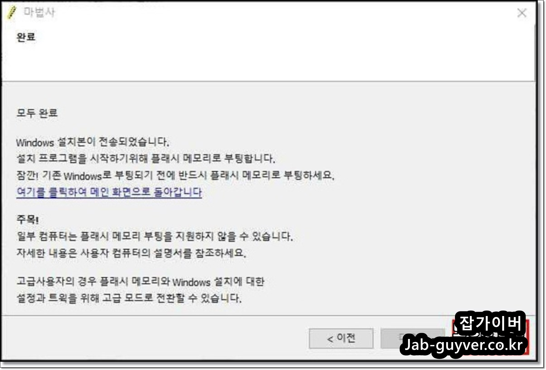 이때 USB 용량은 4GB이상 8GB를 권장합니다.