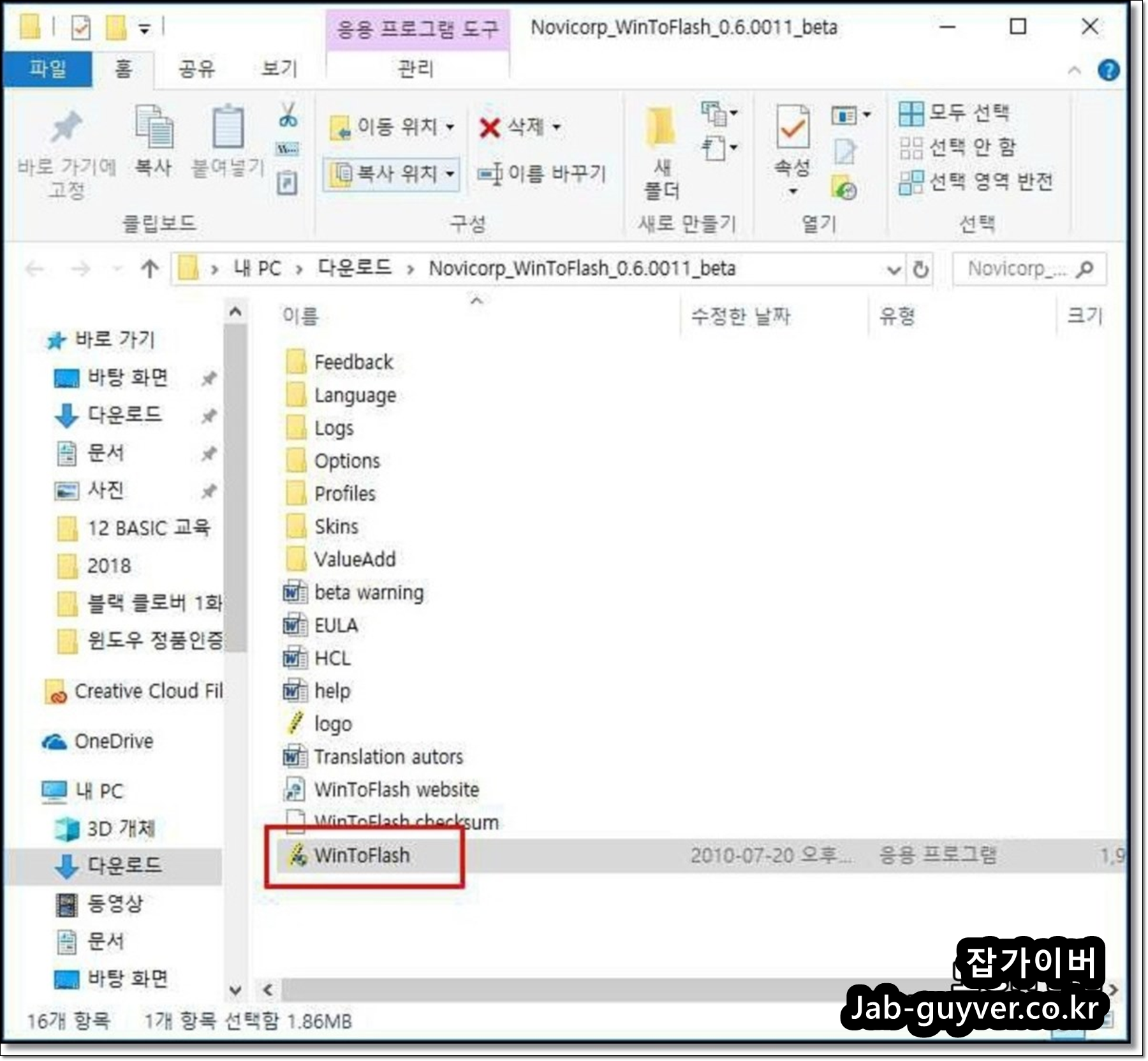 파일을 압축해제 후 WinToFlash.exe파일을 실행합니다.
