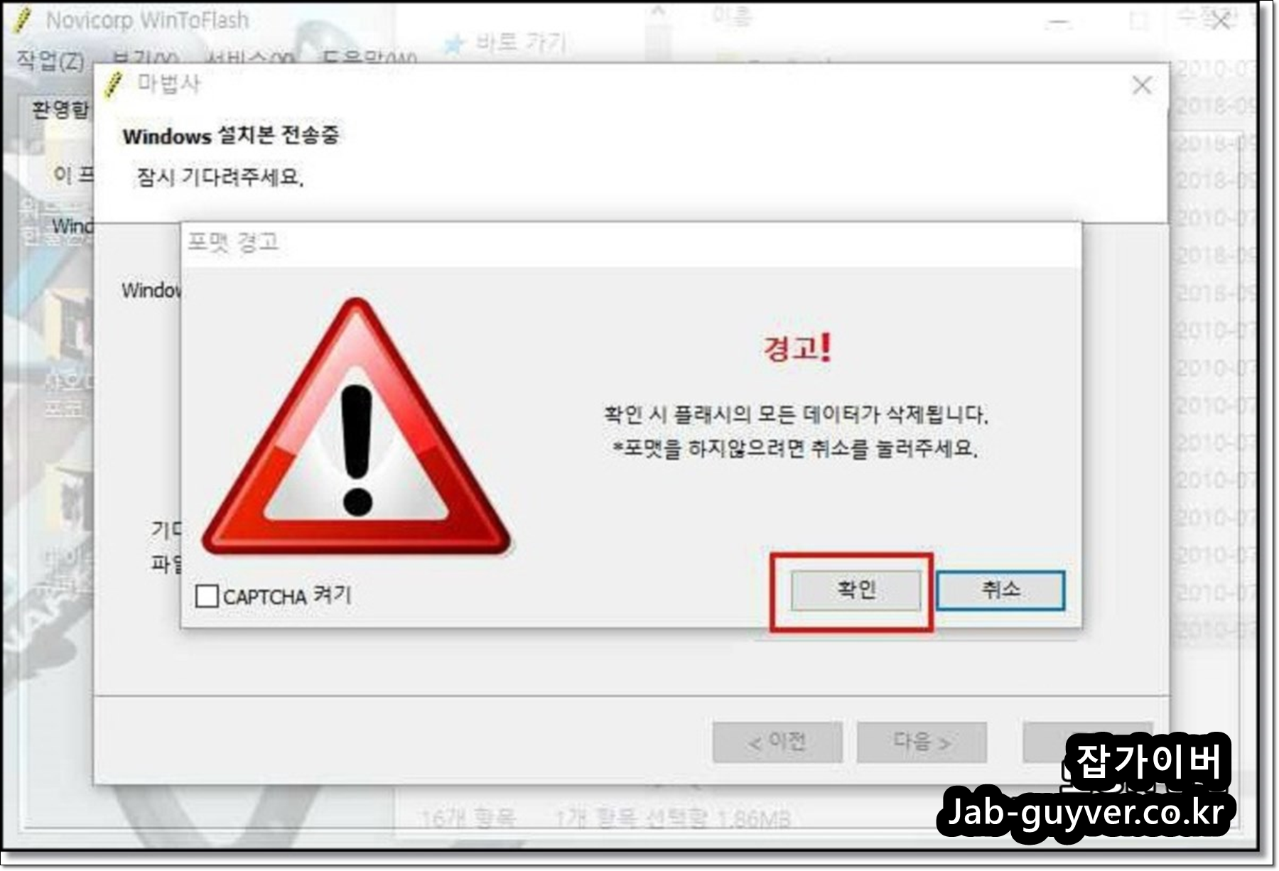 이후 윈도우11 USB 부팅디스크가 만들어지는데 이때 USB 안에 있는 데이터는 모두 삭제됩니다.