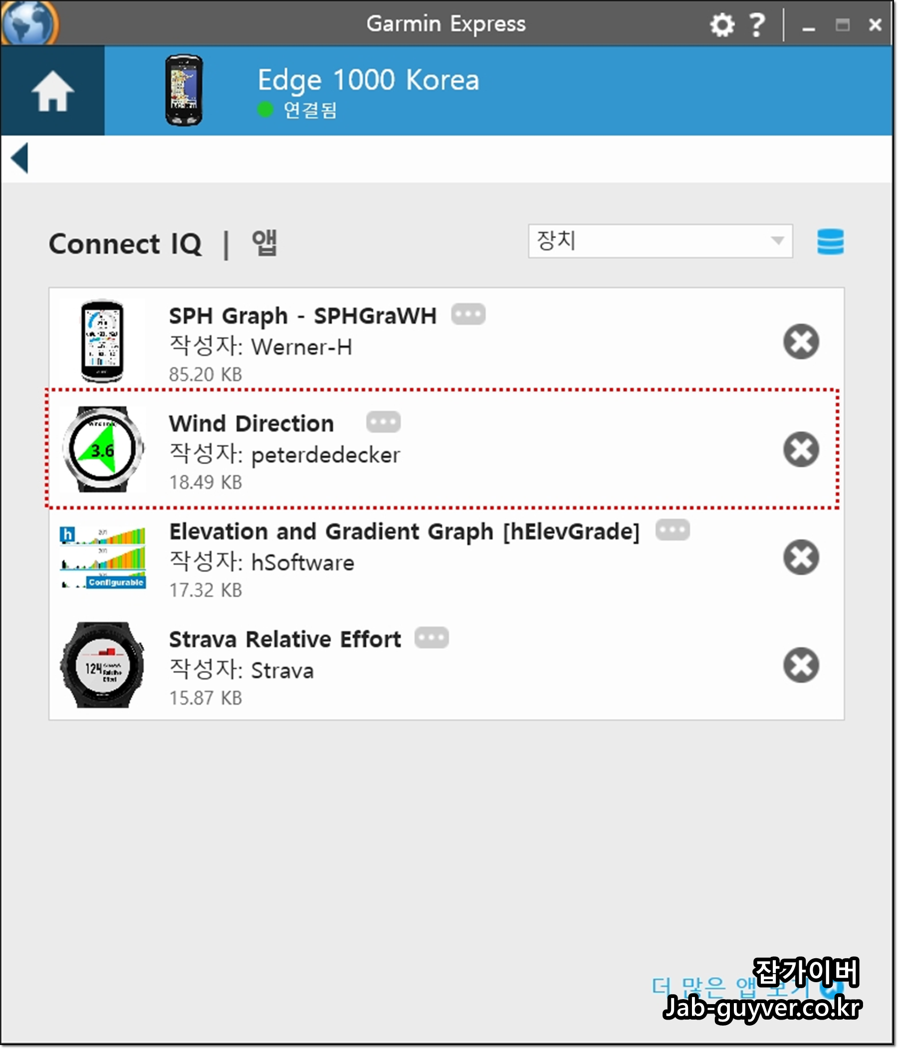 특히 여름보다는 가을이 바람의 영향이 크기 때문에 가민을 통해 바람방향을 알고 싶은 분들은 Wind Direction를 설치해서 사용할 수 있습니다.