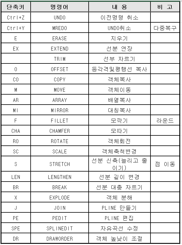 오토캐드 단축키 모음 - AutoCAD