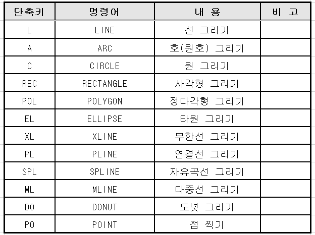 가장 많이 사용하는 오토캐드 기능으로서 라인이나 서클 폴리곤등을 그리는 단축키입니다.