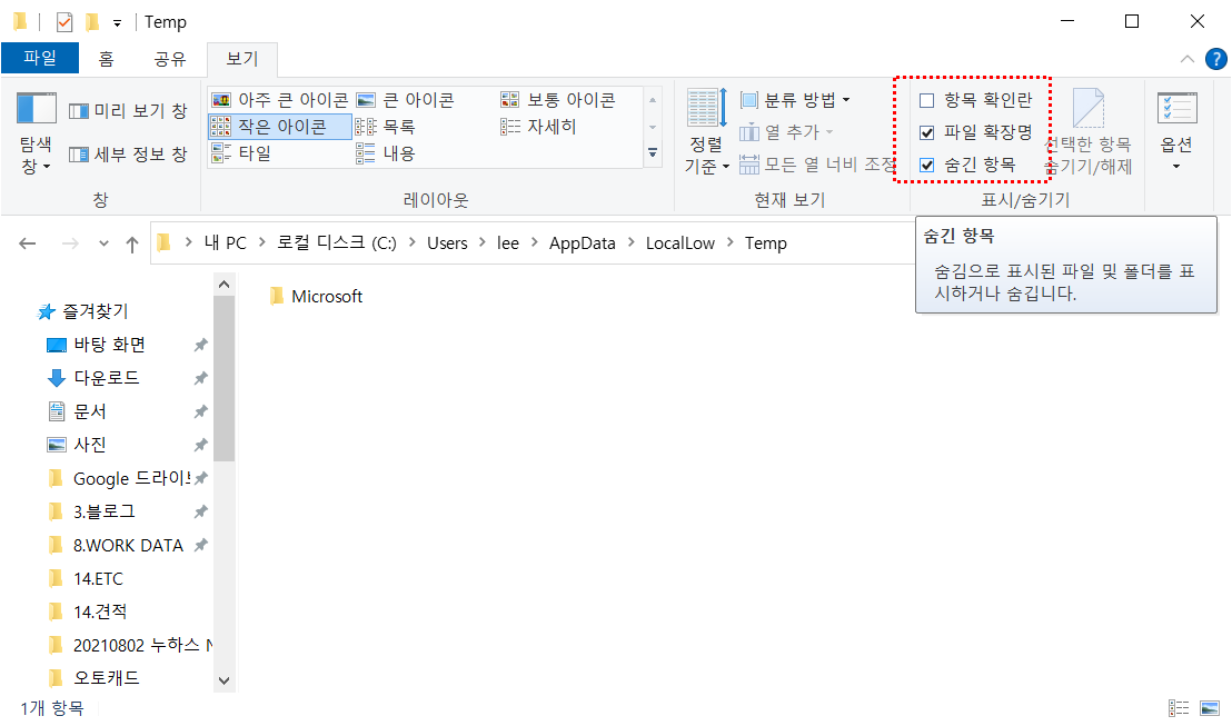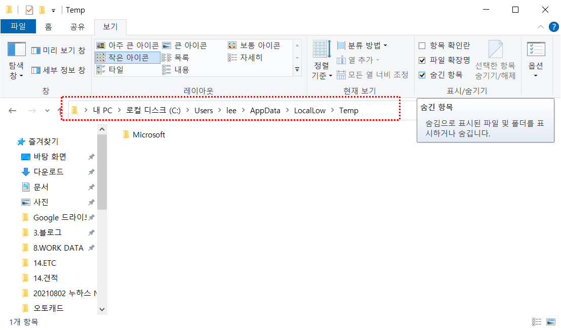 따라서 용량이 점점 늘어나며 주기적으로 Temp 폴더를 정리해주는 것이 좋습니다.