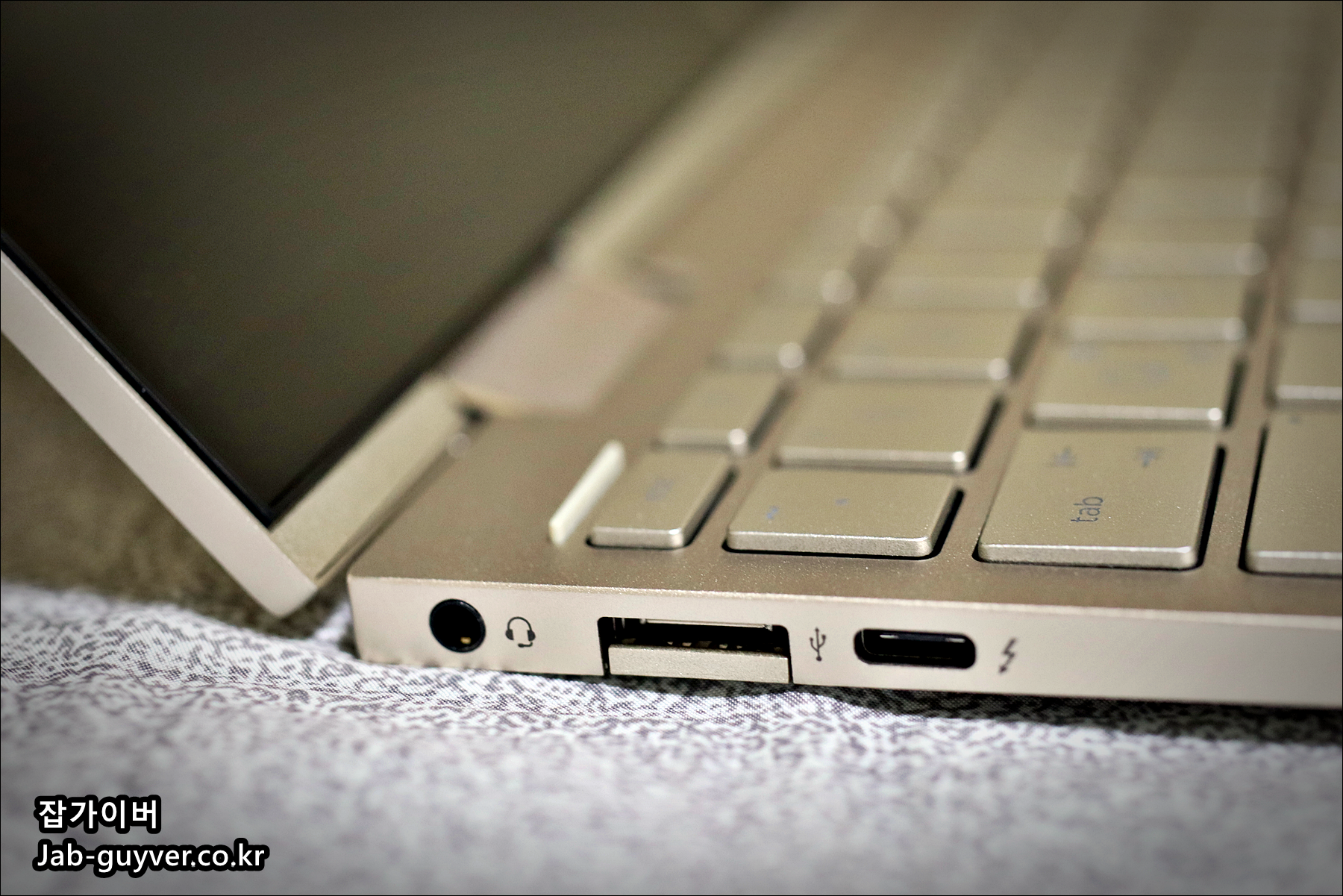 좌측과 우측에 각각 USB-C타입의 케이블과 썬더볼트 그리고 이어폰과 전원 케이블이 있으며 추가로 마이크로SD카드로 용량을 늘릴 수 있습니다.