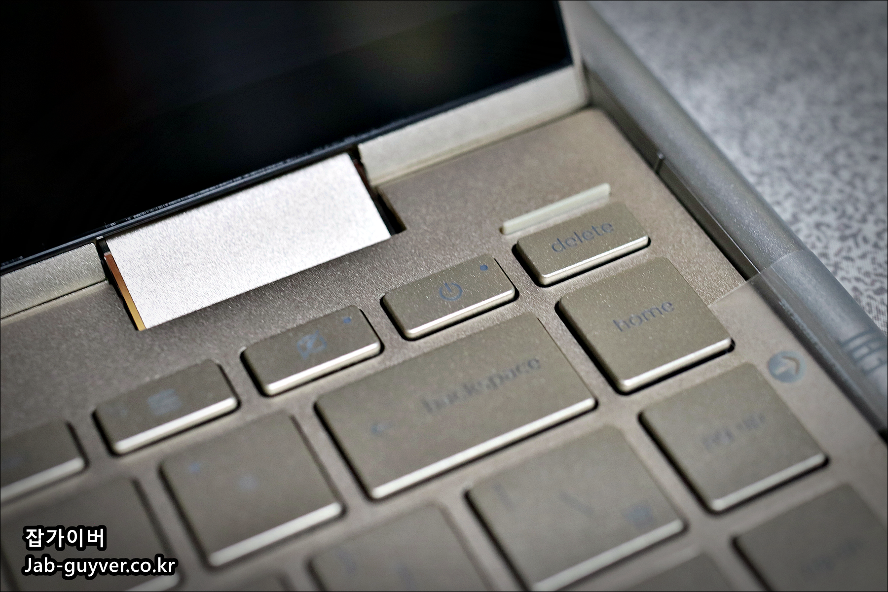 전원버튼의 위치는 우측상단에 Del 옆에 있어서 좋은 위치라고 생각이 들지 않고 13인치 크기답게 홈버튼과 엔드,델리트버튼등이 사용하기엔 적응이 필요한 위치에 있습니다.