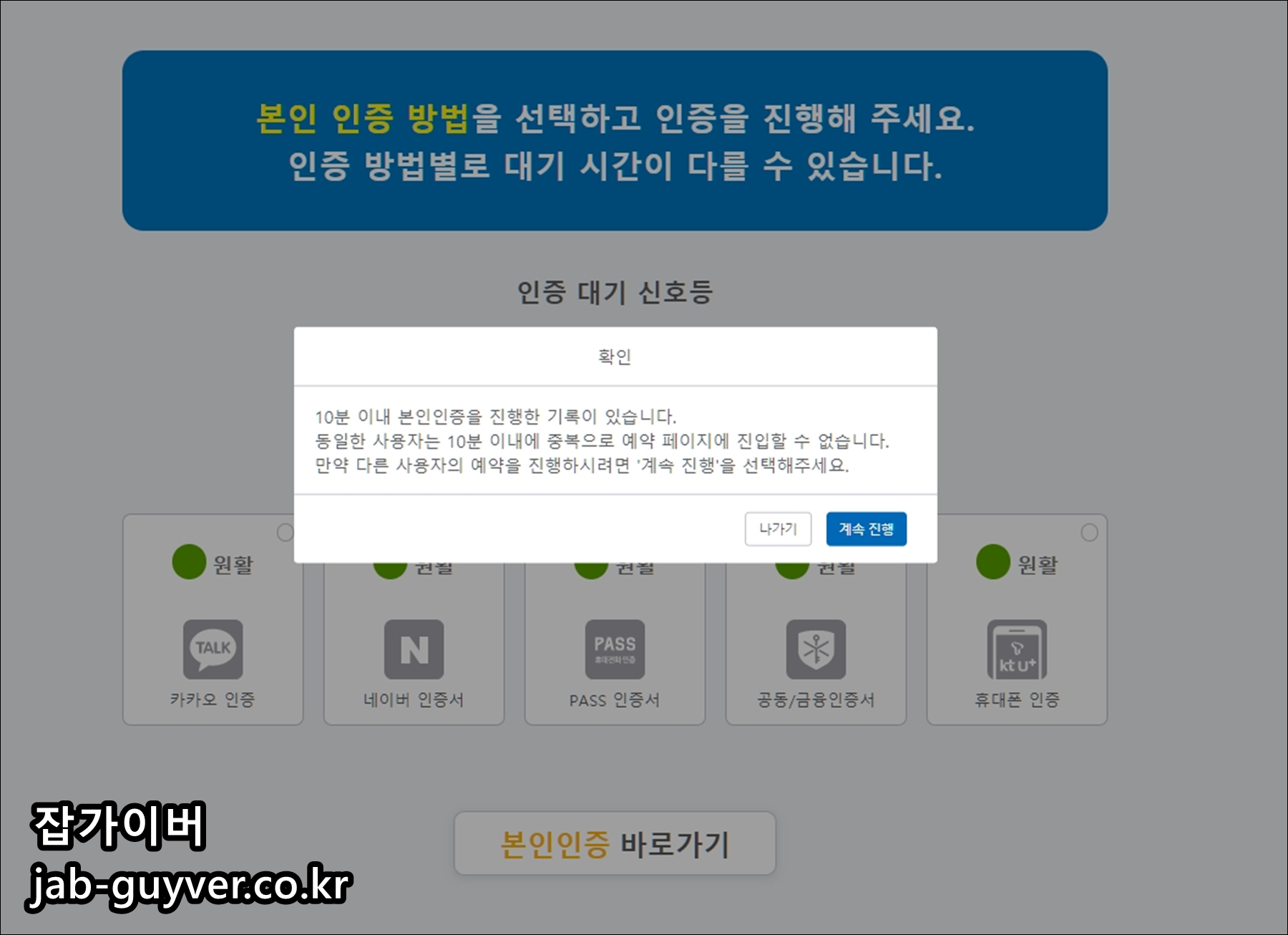우선 8시가 땡 하고 시작했을 때에 모두 원활한 상태로서 본인인증을 2번 진행합니다.