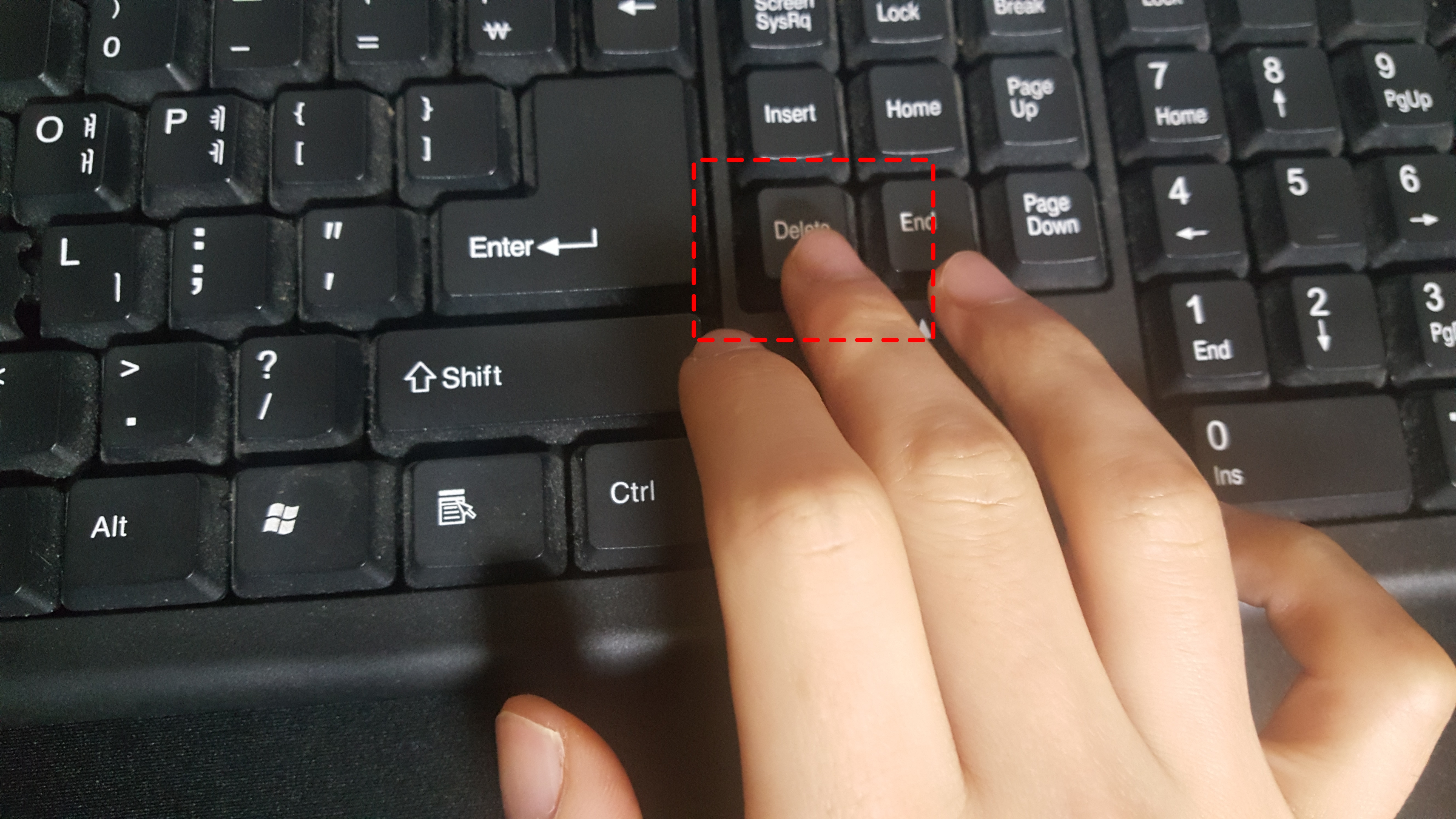 컴퓨터 전원을 키고 메인보드 화면이 넘어간 다음 CMOS 접속을 위한 단축키를 눌러줍니다.