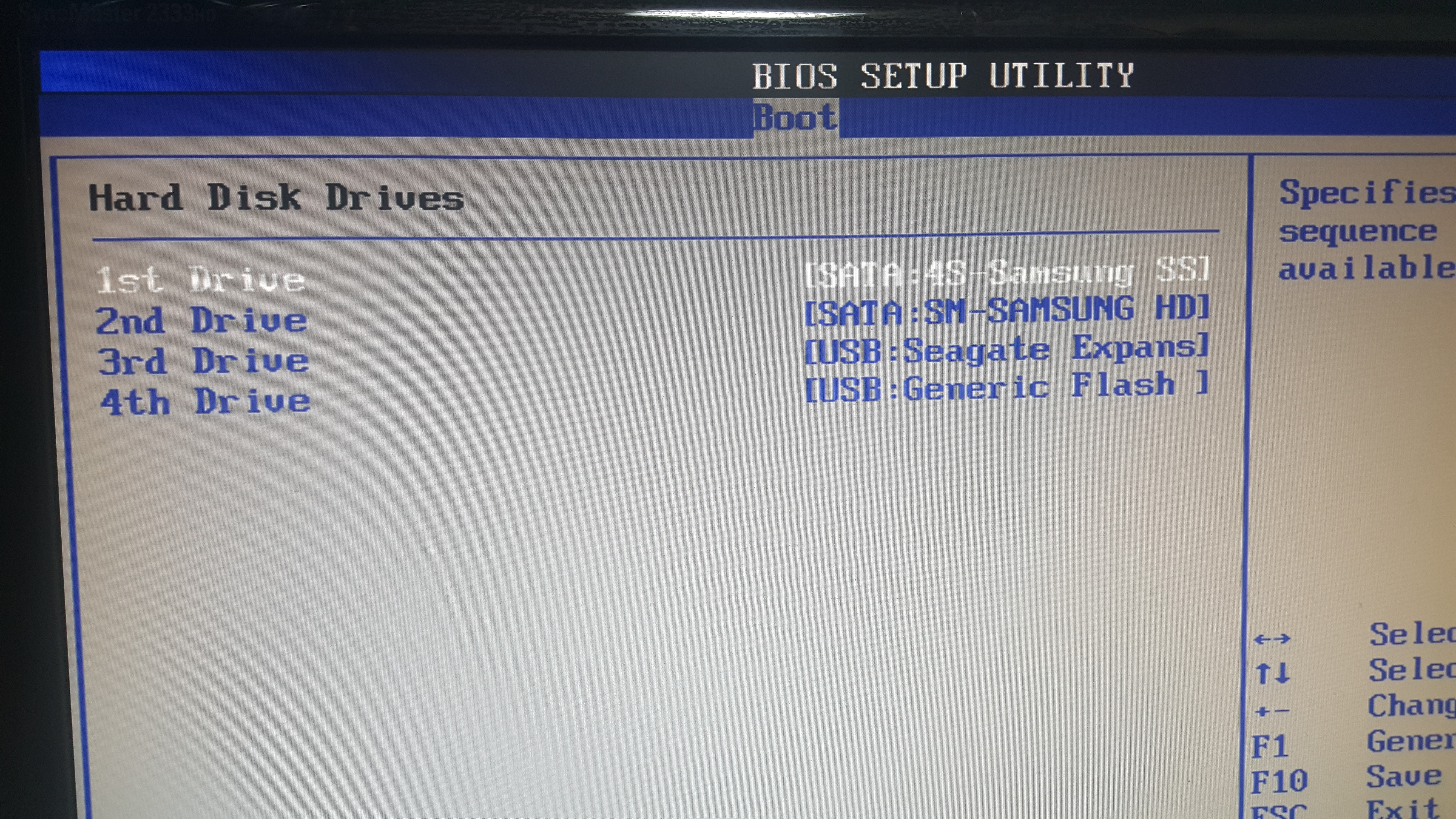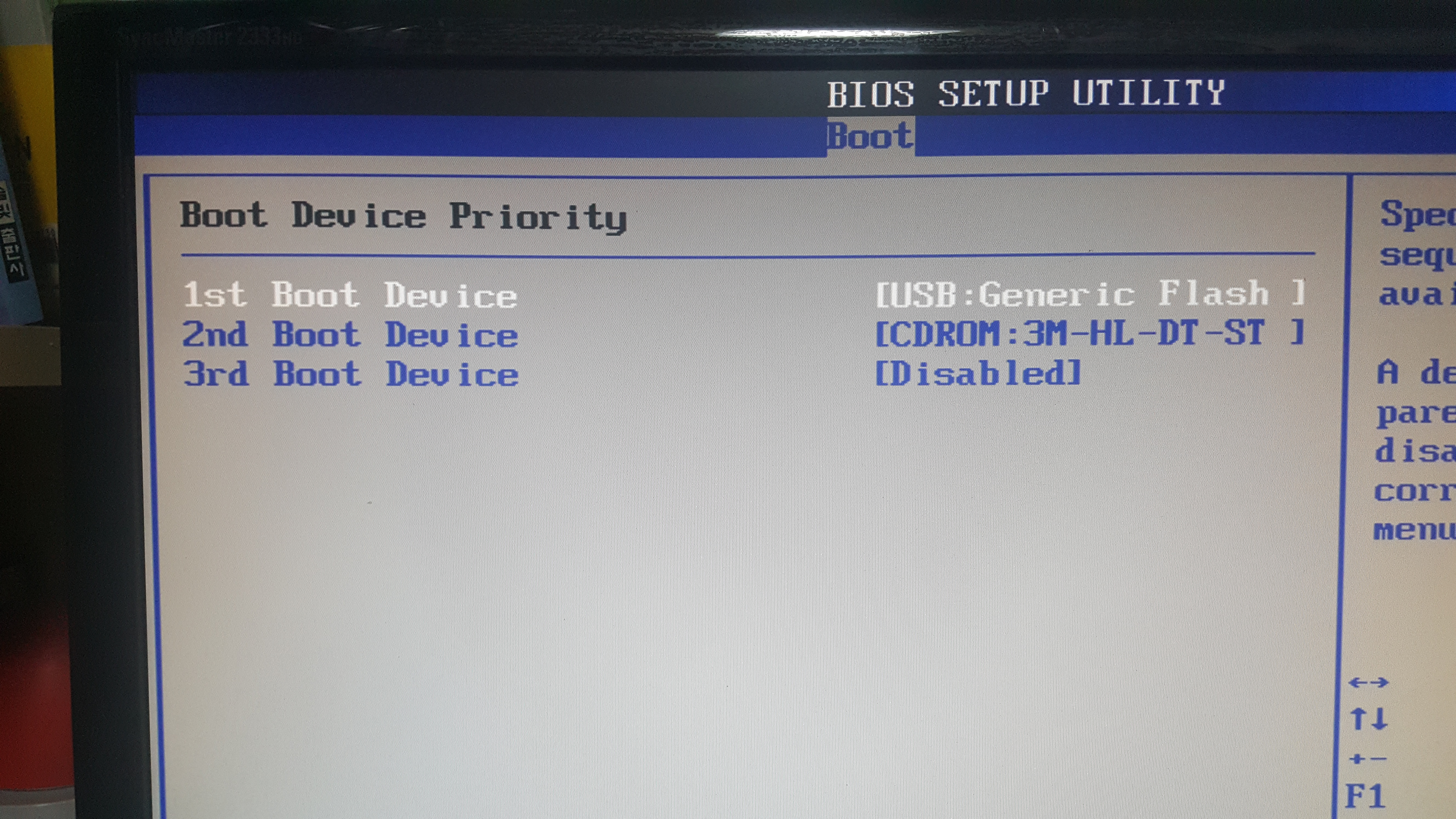 그럼 1st에 Sata가 등록되어 있고 3,4번째에 USB로 설정되어 있습니다.
