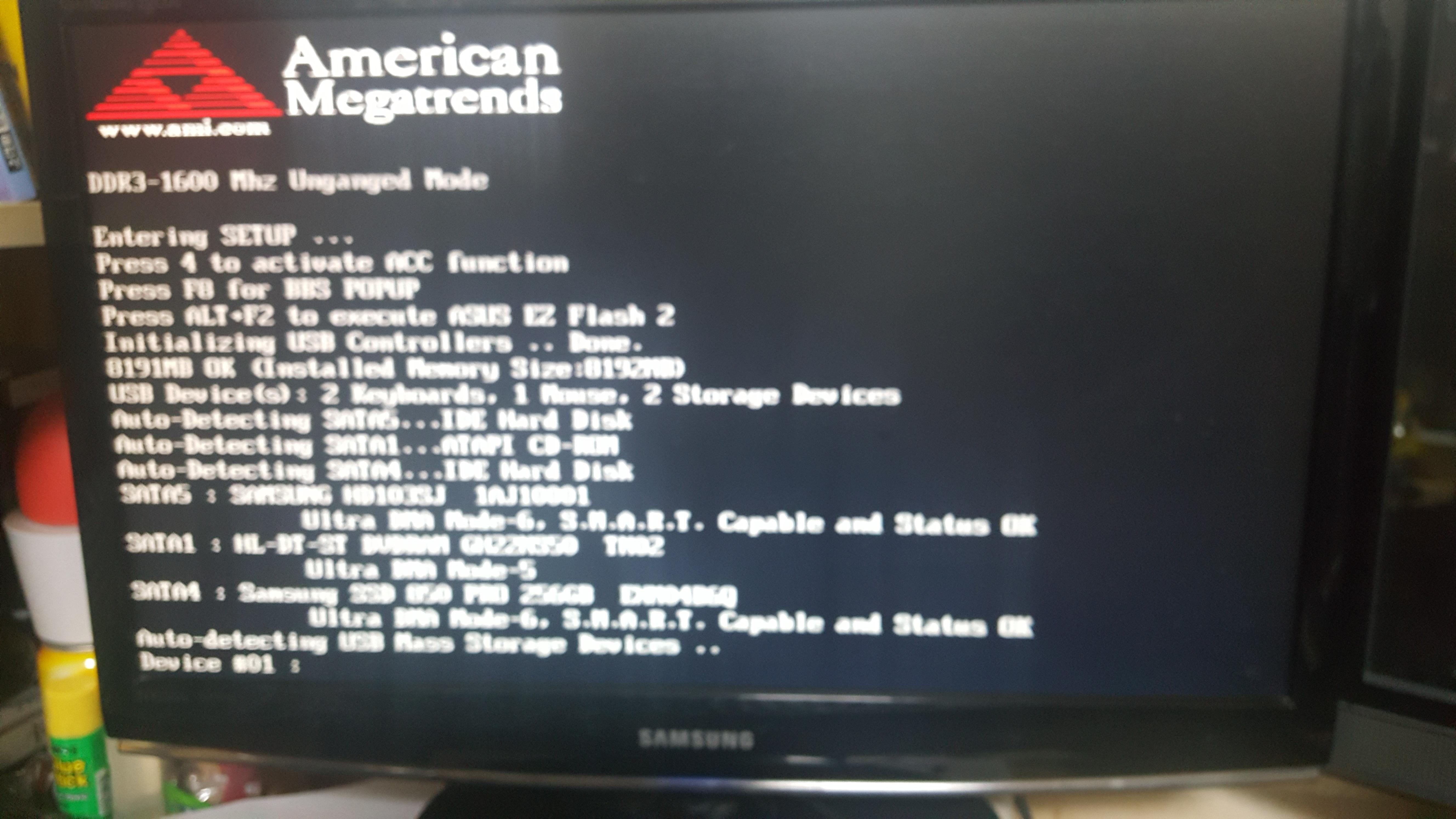 컴퓨터를 처음 부팅시 자신의 브랜드명의 메인보드를 확인할 수 있습니다.