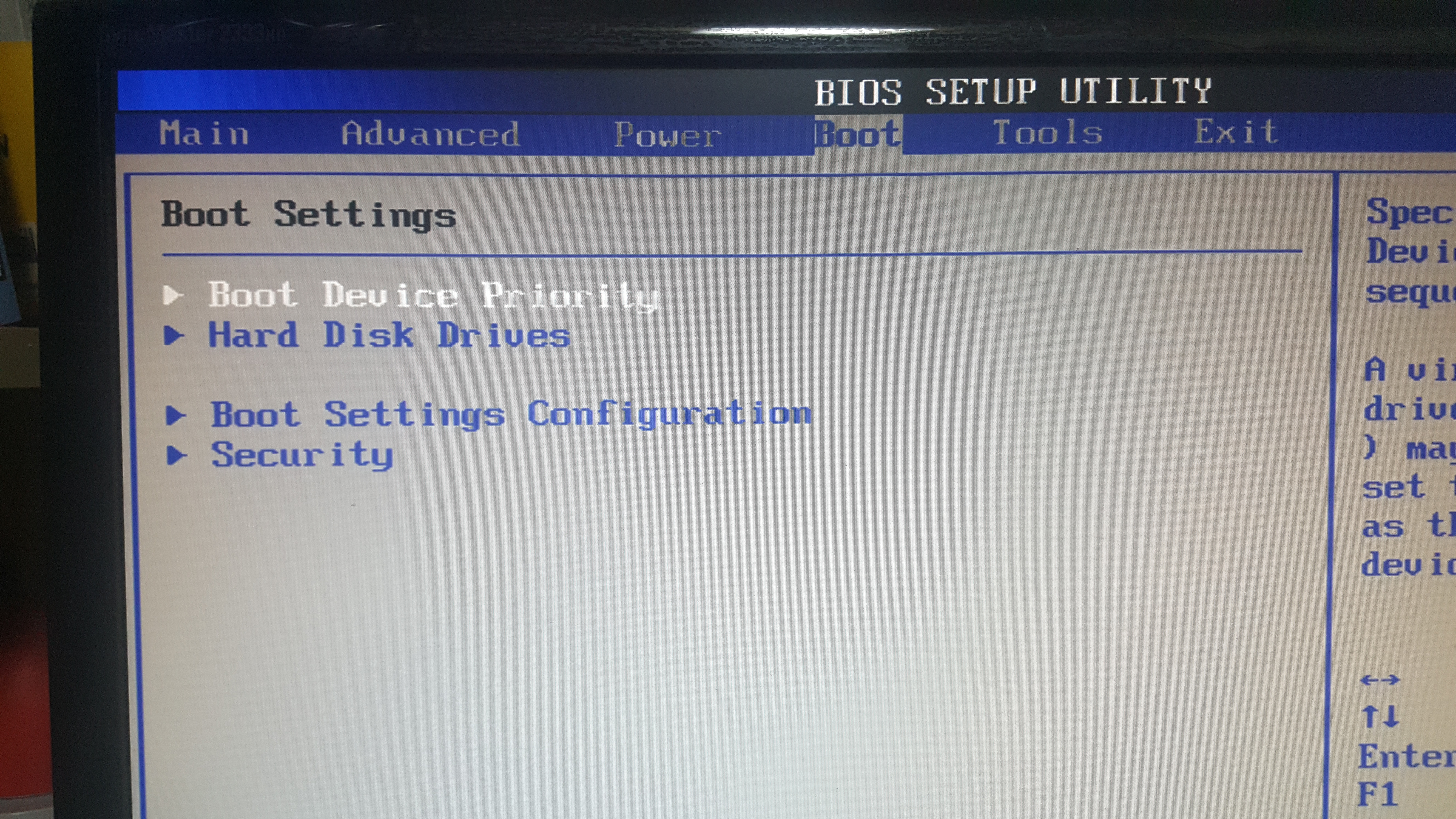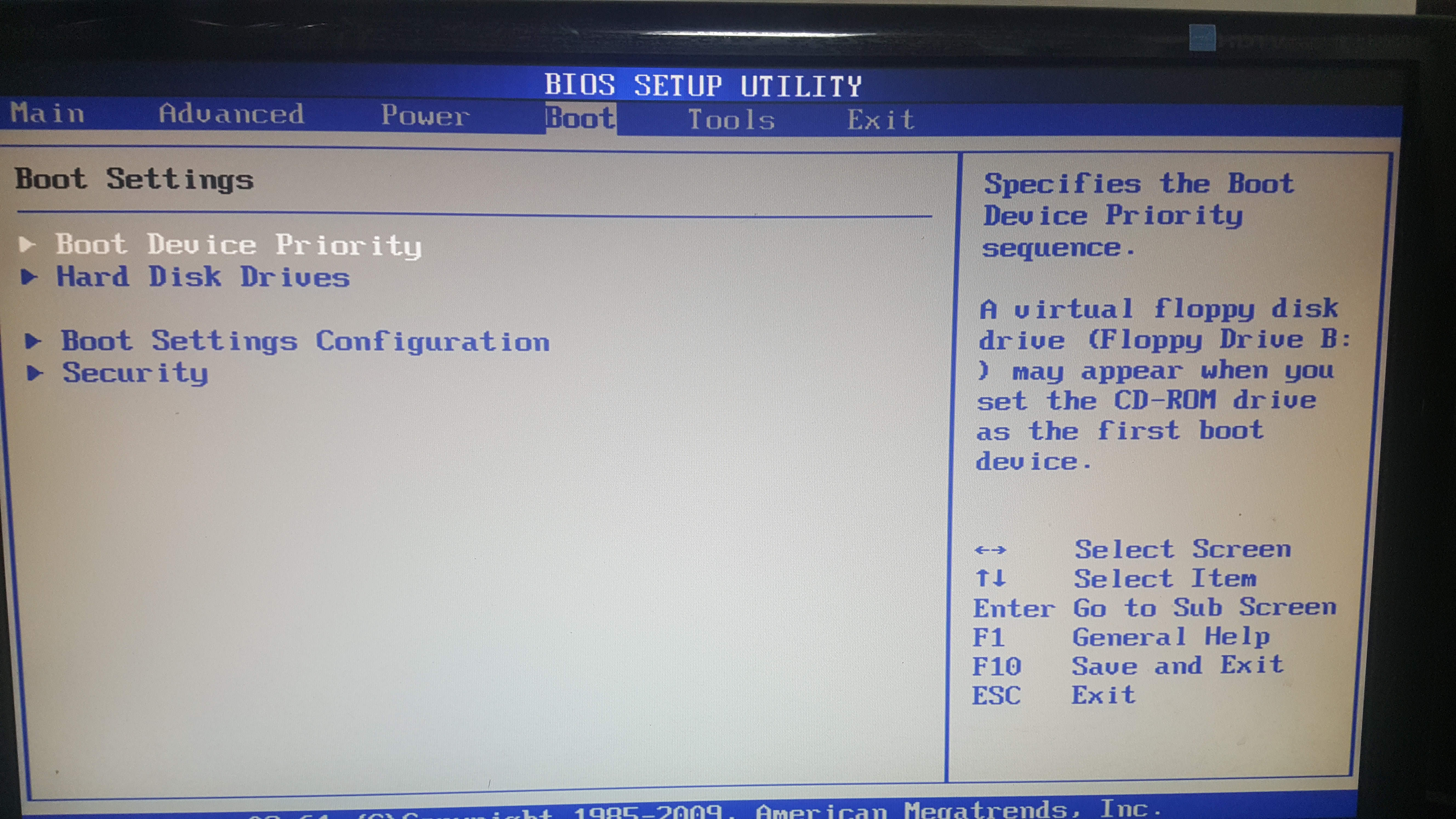 부팅 순서를 변경하기 위해서는 Boot 탭으로 이동합니다.