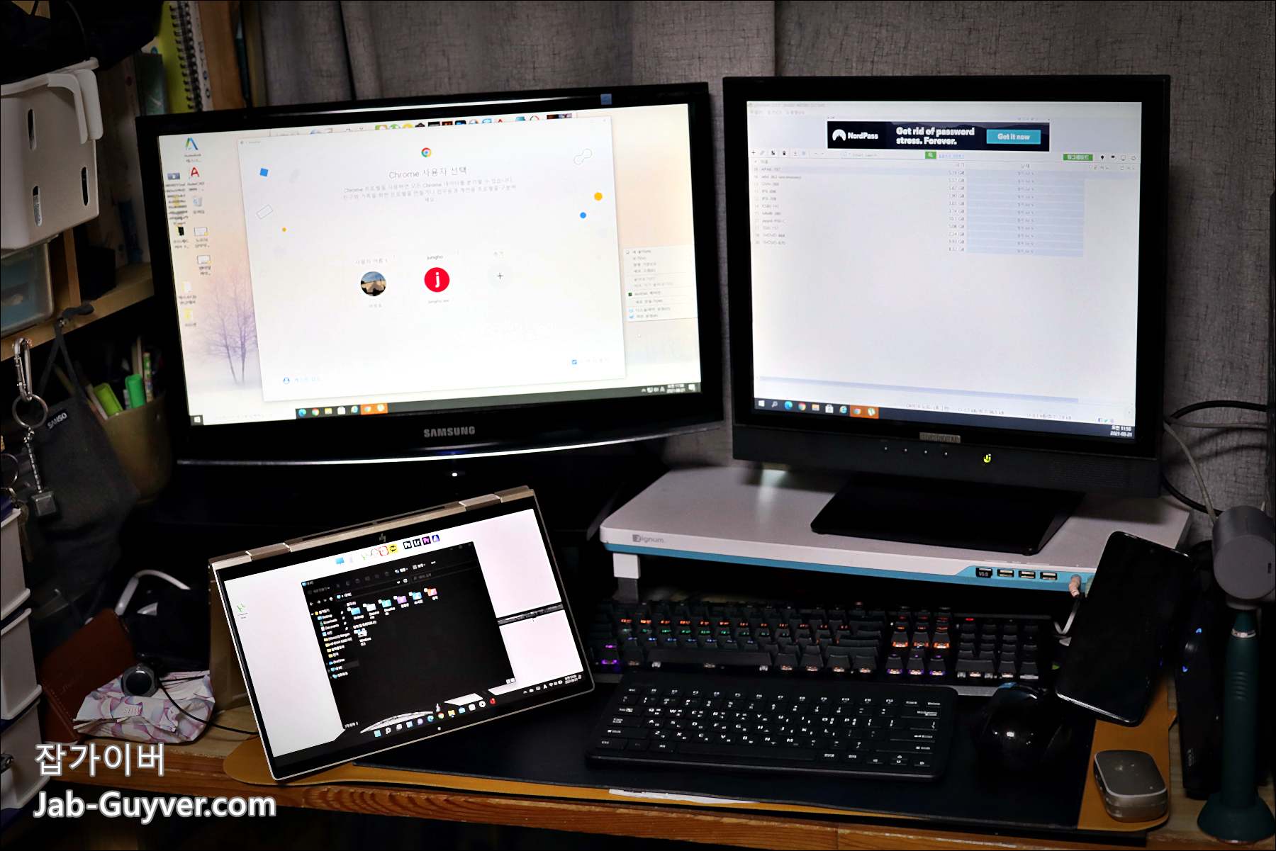 이를 노트북에 바로 연결할 수 있는 방법이 없기 때문에 이렇게 허브를 이용해서 노트북을 모니터에 연결하거나 스마트 TV에 연결해서 사용할 수 있으며 특히 모니터 크기가 작아 불편한 경우에는 컴퓨터 모니터에 연결해서 듀얼 모니터로 사용하느것이 요긴합니다.