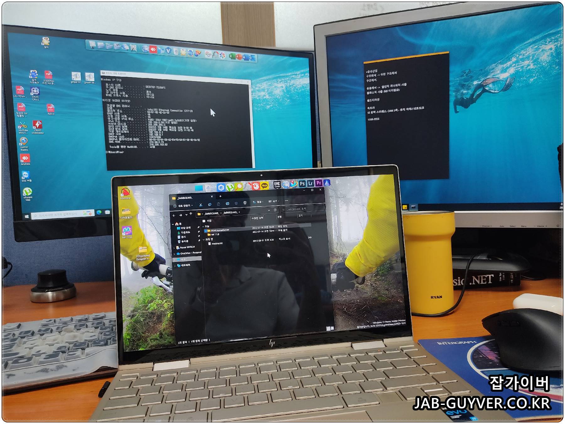 이를 노트북에 바로 연결할 수 있는 방법이 없기 때문에 이렇게 허브를 이용해서 노트북을 모니터에 연결하거나 스마트 TV에 연결해서 사용할 수 있으며 특히 모니터 크기가 작아 불편한 경우에는 컴퓨터 모니터에 연결해서 듀얼 모니터로 사용하느것이 요긴합니다.